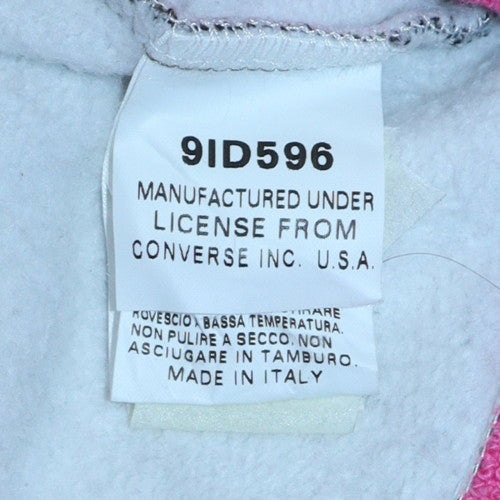 Stay effortlessly stylish and comfortable with this Converse women’s camouflage hoodie. Designed in a classic pullover style, this piece delivers a perfect blend of casual ease and sporty edge. Crafted from a soft and durable cotton-polyester blend, the fleece interior ensures gentle warmth and breathability for year-round wear. The all-over camouflage design gives it a trendy, urban look, while the pink Converse logo and coordinating drawstring add a pop of vibrant colour that stands out beautifully against the muted greens and browns. The ribbed pink and white hem and cuffs complete the look, giving it a snug and flattering fit. This hoodie features a roomy hood and a front kangaroo pocket for functionality and comfort. Its regular fit offers a relaxed silhouette that pairs easily with jeans, joggers, or leggings, making it an ideal choice for casual outings, lounging, or light outdoor activities. With its high-quality construction and stylish detail, the garment reflects Converse’s signature blend of authenticity and modern streetwear appeal. Made in Italy under Converse’s quality standards, this piece promises durability and timeless style. Perfect for autumn, spring, and winter layering, you’ll reach for this hoodie whenever you want warmth and effortless cool combined. This is an excellent pre-owned condition hoodie, showing only minimal signs of wear with soft, well-kept fabric. A must-have staple for any wardrobe that values both comfort and Converse’s iconic streetwear edge. Add this standout camo print hoodie to your rotation today and step into classic athletic fashion—made for everyday wear with an eye-catching twist.