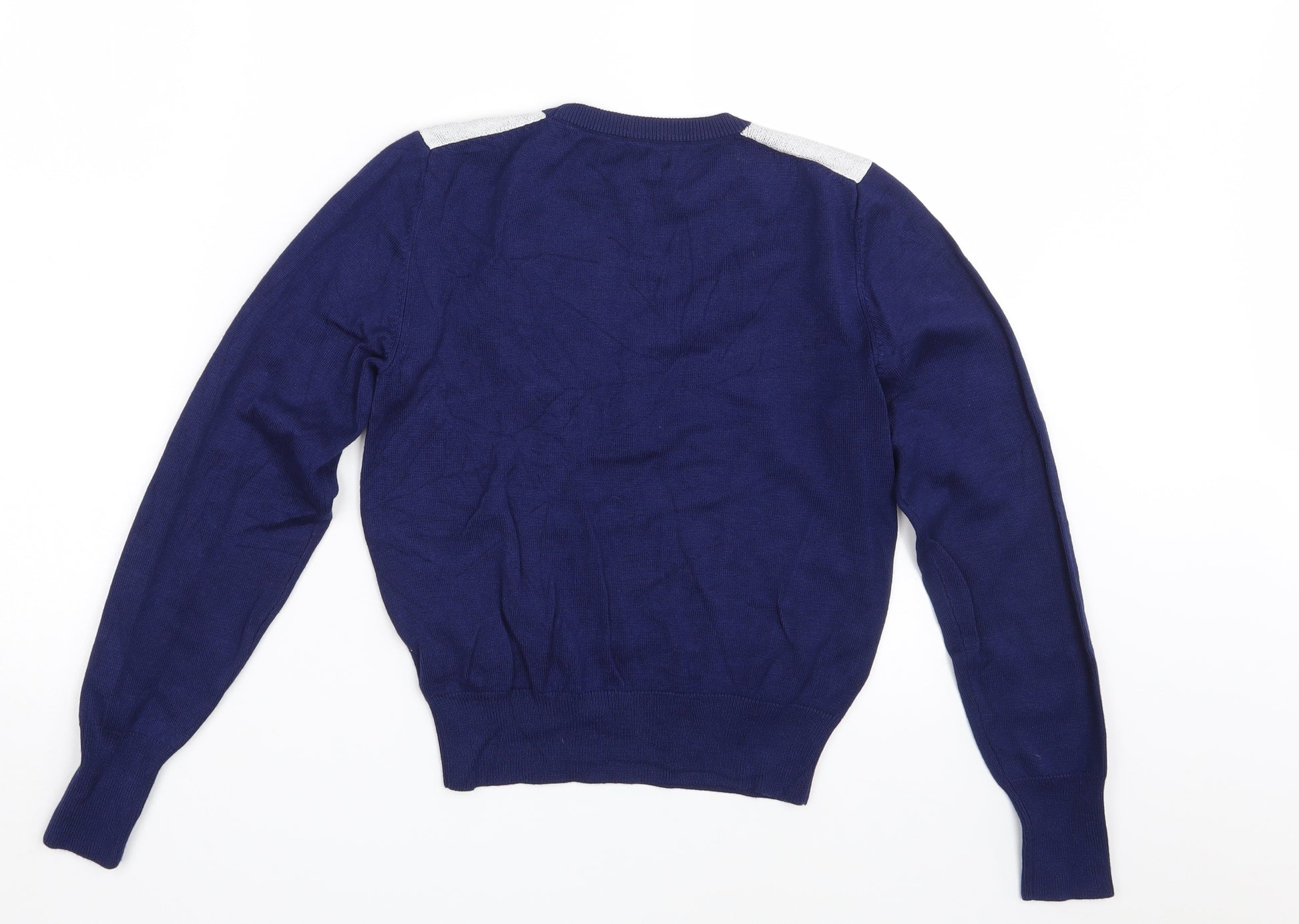 Womens Blue Geometric Knit Pullover Jumper Size XS