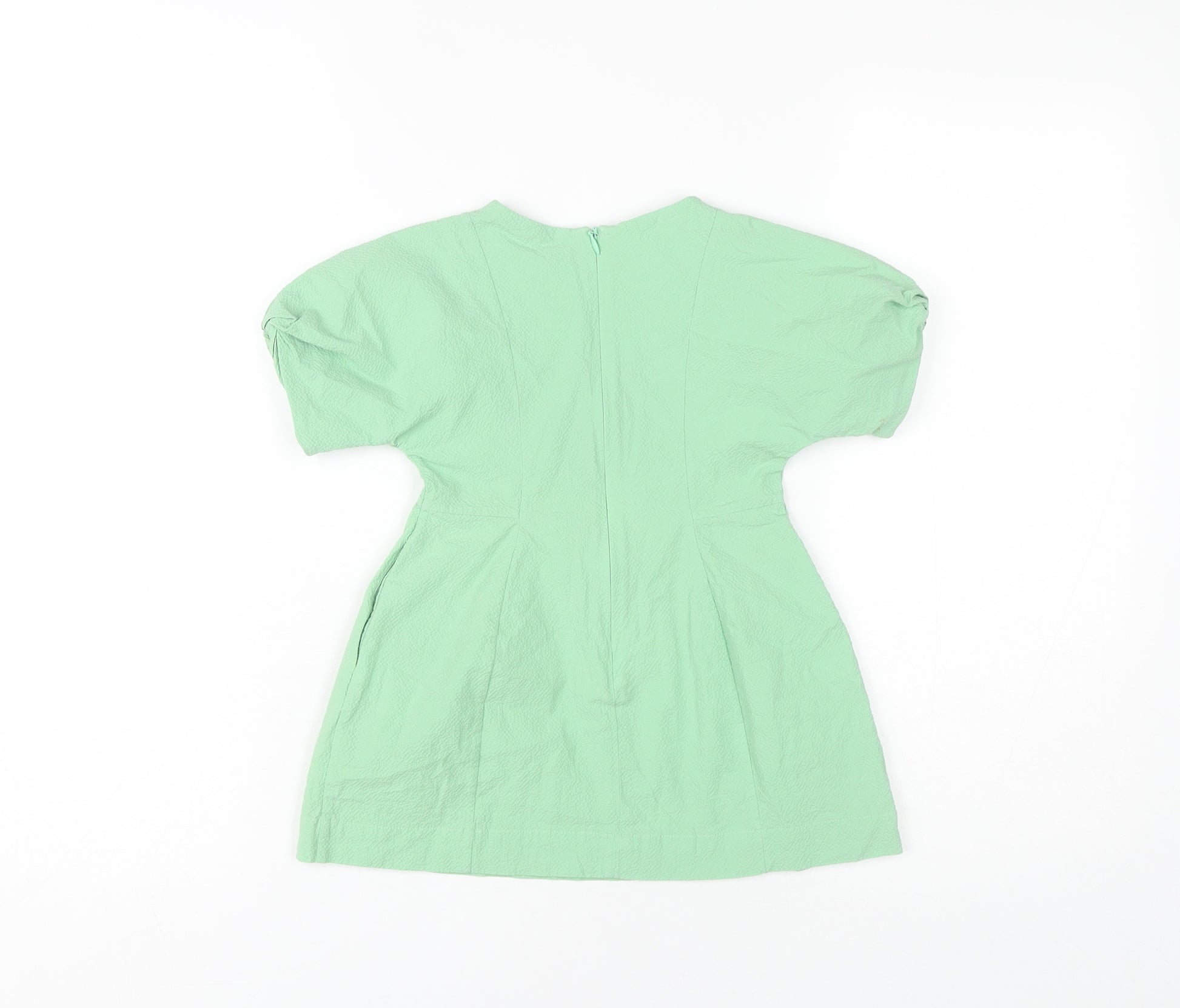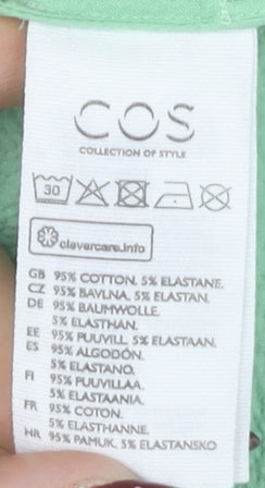 Elevate your little one's wardrobe with this charming COS dress in a refreshing green hue. Crafted for comfort and style, this dress is perfect for everyday wear. Made from a soft cotton blend with a touch of elastane, it ensures a gentle stretch for playful activities. The simple yet elegant crew neck design with short sleeves makes it a versatile piece for layering or wearing on its own during warmer days. Featuring a convenient zip closure at the back, dressing is hassle-free. Although it's in a gently used condition with slight wear visible, it still promises a delightful wear experience. With its machine washable feature, this dress is as practical as it is adorable. Whether it's a casual day out or a playdate, this COS dress promises to add a pop of colour and charm, making it a must-have addition to your girl's collection.