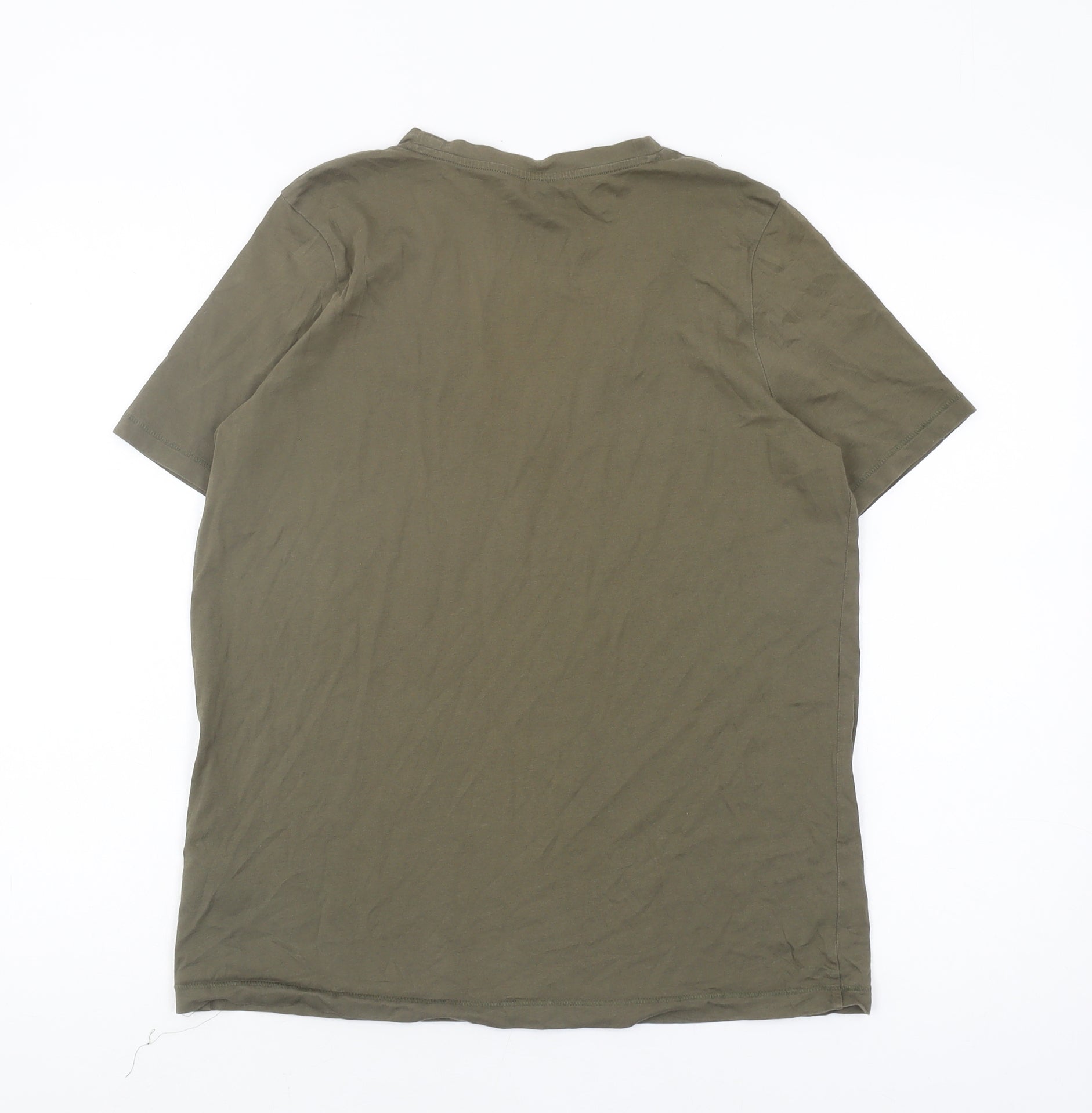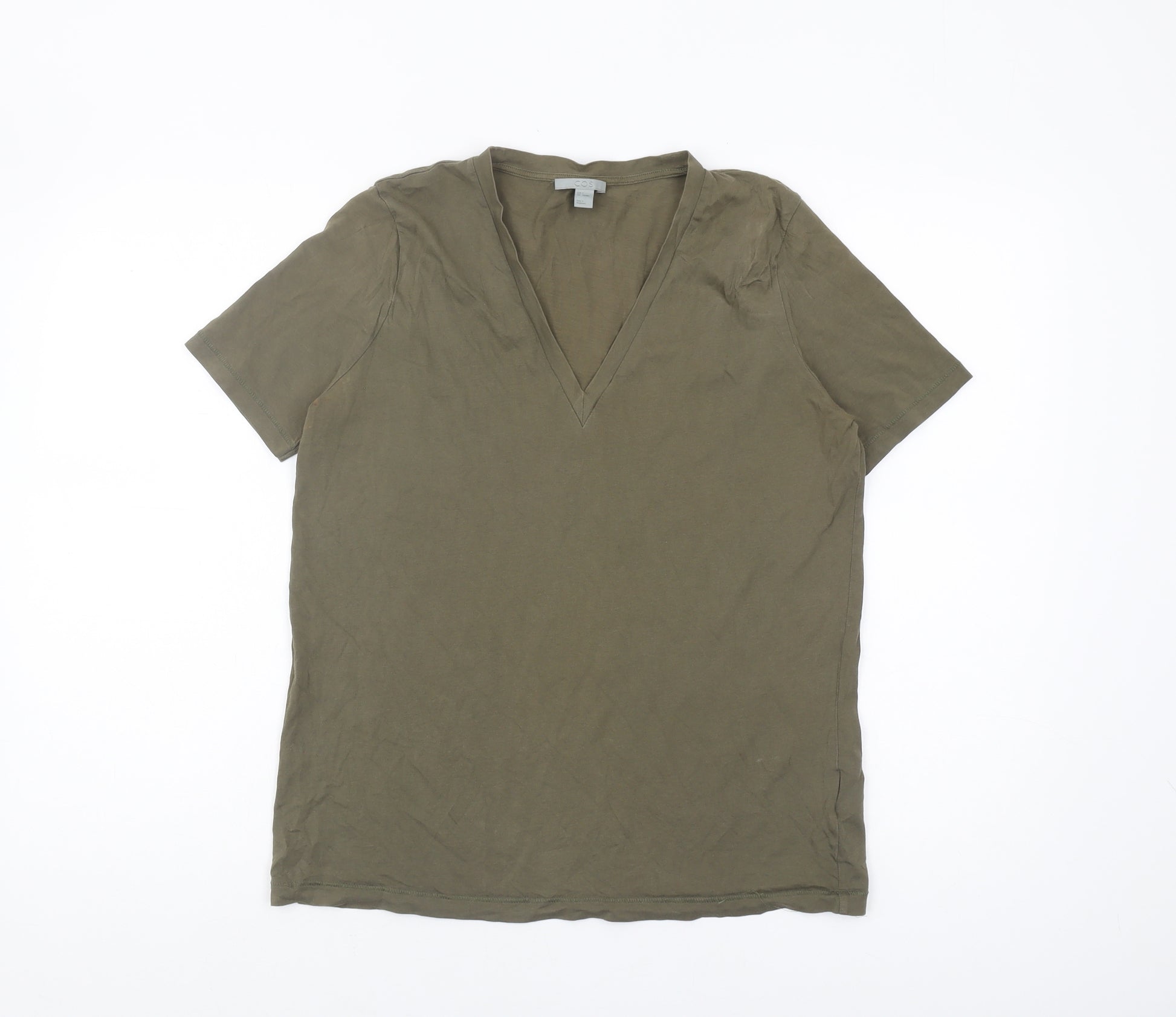 COS Women Green V-Neck Short Sleeve Cotton Jersey T-Shirt Size 12