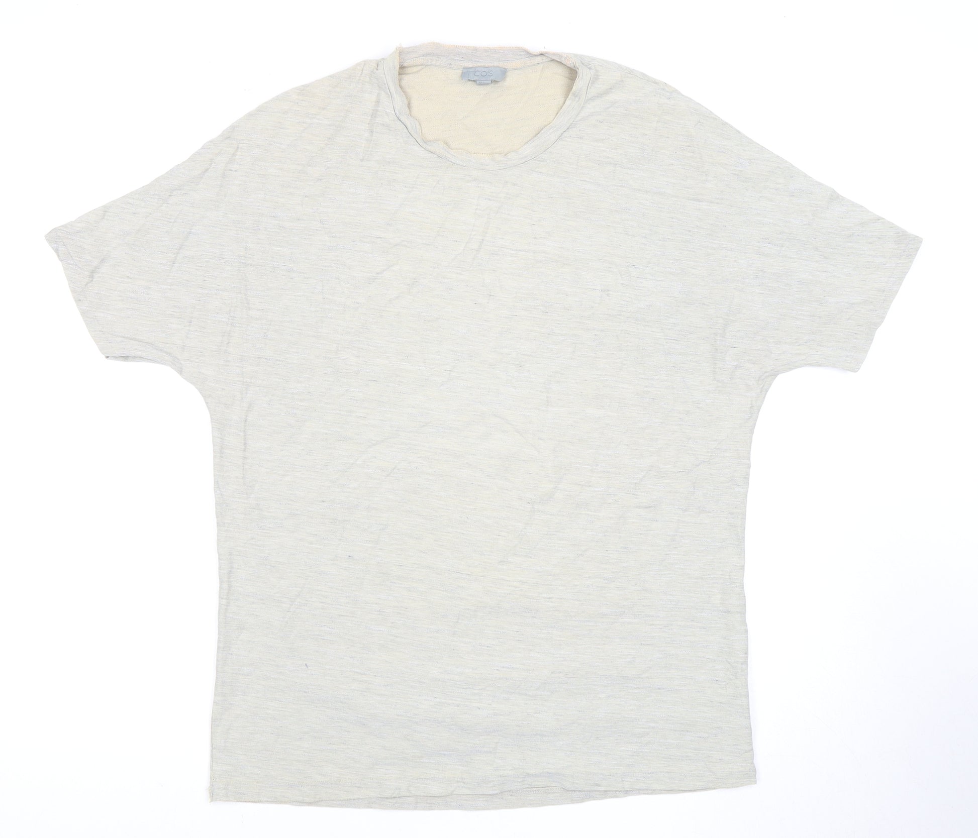 Embrace effortless style with this COS Women's T-Shirt in a versatile beige hue. Perfect for various occasions, this regular fit tee features a classic crew neck and short sleeves, making it a staple for any wardrobe. Crafted from 95% cotton and 5% elastane, this t-shirt promises comfort with a hint of stretch, ensuring a flattering fit while maintaining ease of movement. Tailored for all seasons, it's suitable for layering under jackets or worn solo in warmer weather. The jersey fabric type and easy-care feature make it practical for the modern woman without compromising on style. With its minimalistic design, this solid pattern tee is a must-have for those seeking simplicity with a touch of elegance. Ideal for casual outings, it's a piece you'll reach for repeatedly. In excellent condition, showing slight signs of minimal wear, it's ready to be a cherished addition to your garment collection. Discover the quality and design that COS is known for with this timeless piece.