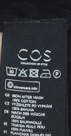 Embrace simplicity with this sleek black knit top from COS, designed for the modern woman seeking both comfort and style. Crafted from 100% cotton, this piece offers a soft, breathable fit for all-day wear, making it a versatile addition to your wardrobe. The classic crew neckline and 3/4 sleeves provide a timeless silhouette, ideal for layering or wearing on its own. Whether paired with tailored trousers for work or dressed down with jeans for a casual outing, this top adapts seamlessly to any occasion, ensuring you look effortlessly chic. Elevate your ensemble with this elegant, easy-care garment—perfect for the fashion-forward individual.