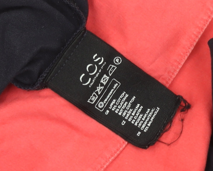 Step out in effortless style with this striking COS dress, a perfect blend of contemporary design and comfort. Crafted from a high-quality cotton blend, this navy and red colourblock dress offers a modern A-line silhouette, making it versatile for various occasions. Its classic crew neck and short sleeves provide a timeless appeal that flatters all body types. Ideal for casual outings or smart-casual settings, this dress pairs easily with your favourite accessories, letting you transition seamlessly from day to night. Whether worn with trainers for a relaxed look or styled with heels for an elevated ensemble, this dress remains a wardrobe staple. Embrace the ease of chic dressing with COS, known for their superior craftsmanship and minimalistic elegance. This piece is a must-have for any fashion-conscious individual looking to make a statement with simplicity and grace.