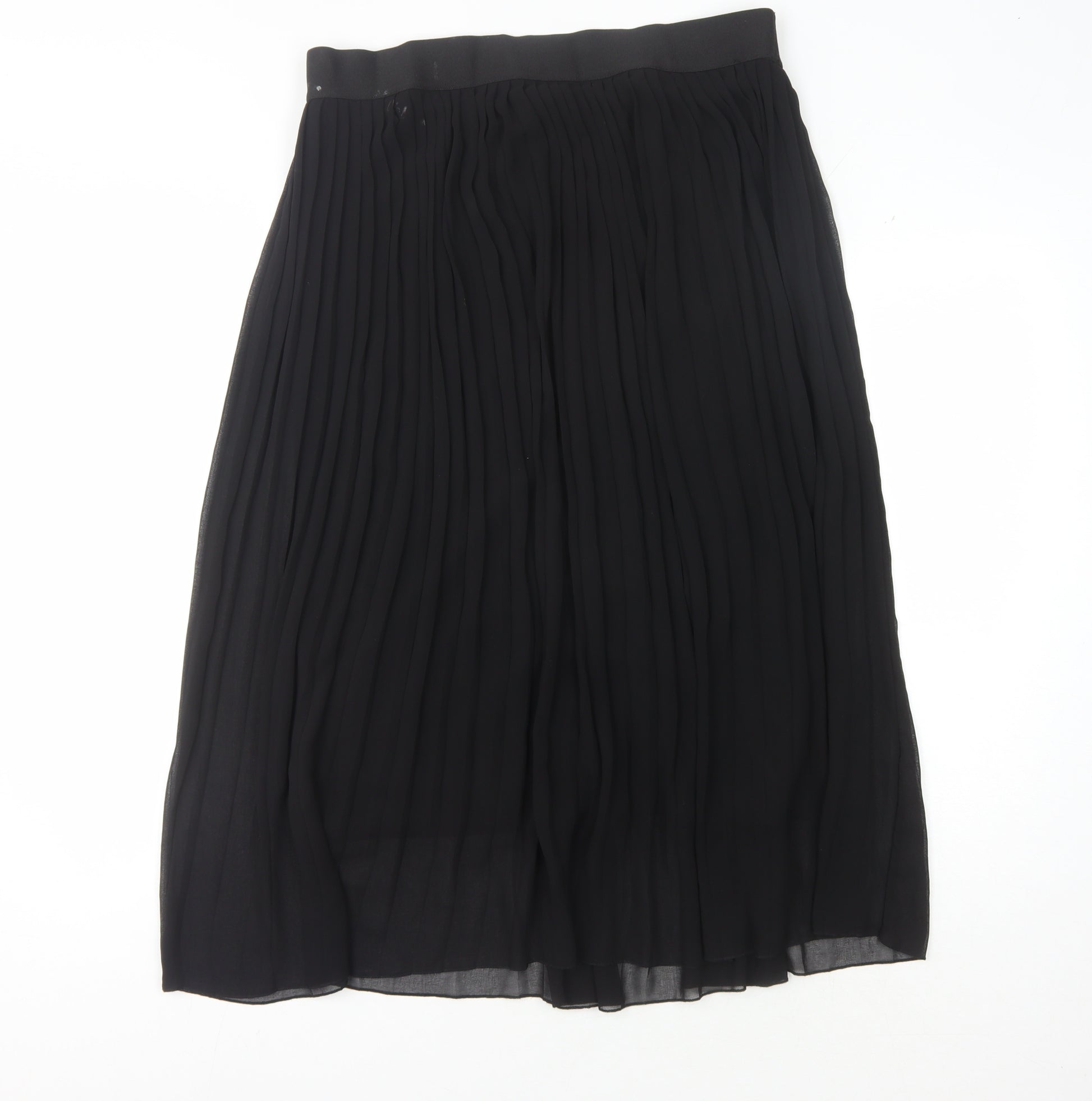 Elevate your wardrobe with the elegant Cotswold Collections Black Pleated Midi Skirt. Designed for women who appreciate classic style, this skirt combines a timeless pleated silhouette with a versatile black colour, making it an ideal choice for any occasion. Crafted with comfort in mind, its elastic waist ensures a perfect fit, allowing you to move with ease and grace. Made from 100% polyester chiffon, the skirt offers a lightweight feel, perfect for all seasons. This regular-sized, mid-rise skirt reflects the refinement of Cotswold Collections, effortlessly blending sophistication with simplicity. Whether you're heading to a casual gathering or a more formal event, this skirt pairs beautifully with blouses and tops to create various stylish ensembles. Despite having marks on the waistband, this skirt remains in good condition, ready to become a staple in your collection. Hand wash care ensures longevity and preservation of its elegant style. Experience the charm and versatility of the Cotswold Collections Black Pleated Midi Skirt, and bring a touch of class to your attire. Don't miss the opportunity to own this classy piece that's priced affordably, reflecting both quality and style, available now at just £14.75.