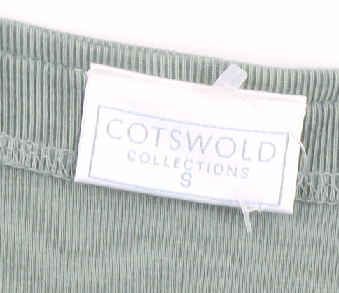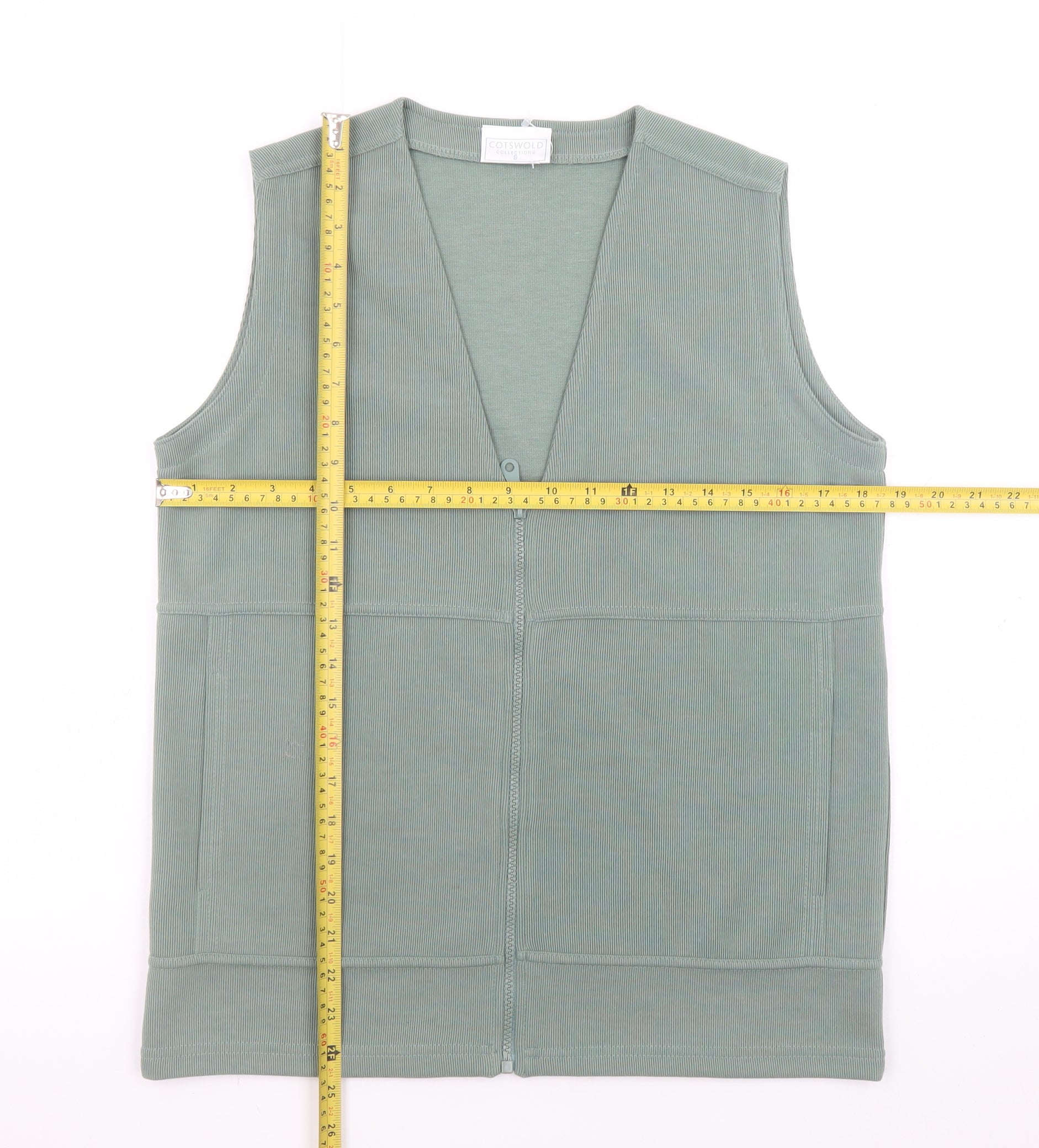 Discover timeless everyday comfort with this Cotswold Collections women’s sleeveless top in a soft pastel green hue. Crafted from a blend of polyester and cotton, the fabric offers a breathable and lightweight feel while maintaining a refined finish. The ribbed knit jersey material has a smooth texture that enhances comfort and flexibility, making it ideal for layering or wearing on its own. Designed in a flattering V-neckline and a clean front zip closure, this tank perfectly blends practicality with elegant simplicity. The solid colour and minimalistic design make it a versatile wardrobe staple, suitable for relaxed weekends, casual outings, or layering beneath cardigans and blouses for added warmth. Featuring a Regular fit and sleeveless cut, this piece ensures ease of movement and all-day comfort. The full zip front adds a touch of modern practicality, complemented by the soft, wrinkle-resistant fabric that holds its shape well. Perfect for spring and summer wear, the breathable blend ensures you stay cool and stylish throughout warmer days. Pair it with light trousers or skirts for a casual daytime outfit, or layer it effortlessly for transitional seasons. Finished with an understated yet sophisticated tone, this top embodies the quality and understated elegance associated with the Cotswold Collections brand. Whether dressing for leisure, travel, or casual gatherings, it is a must-have essential that brings ease and style to everyday dressing. Conditioned in excellent pre-loved state, it has minor signs of wear but no visible defects. A wonderful choice for anyone seeking a high-quality women’s top with classic appeal and versatile wearability.