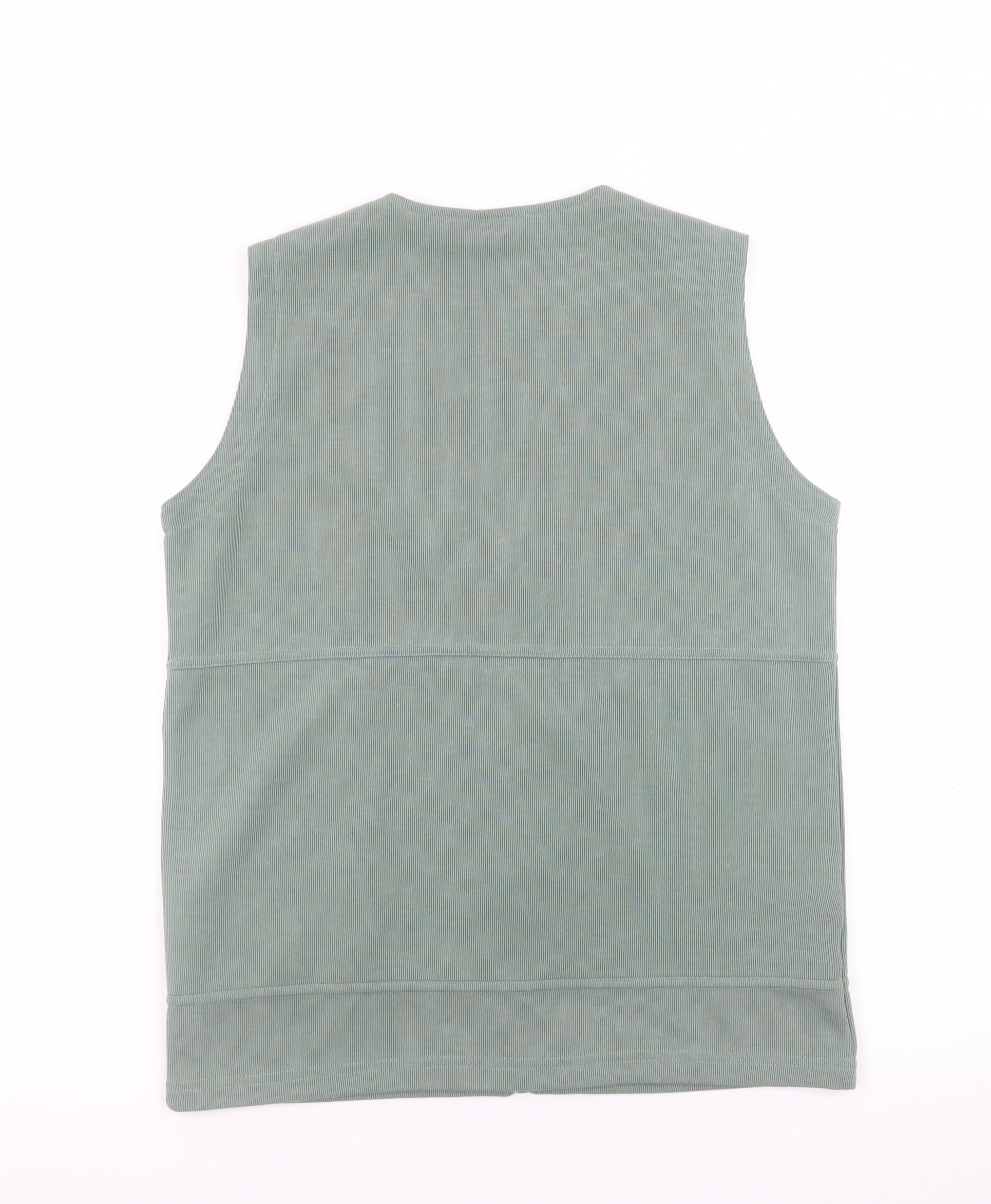 Women Green Zip Front Sleeveless Basic Tank Top S