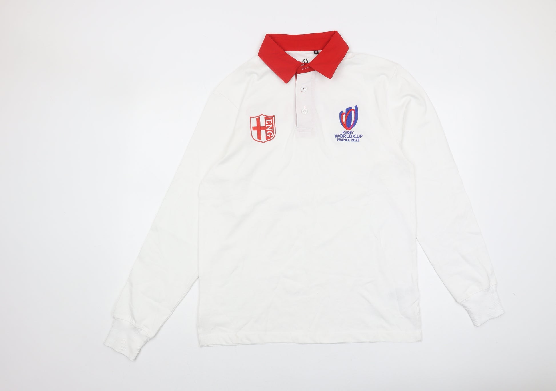 Introducing this official Rugby World Cup 2023 sweatshirt, marking your passion for the sport with both style and comfort. Produced by Cotton Division, this medium-sized sweatshirt for men shines with its crisp white palette, complemented by a striking red collar, embodying a refined henley style that's perfect for rugby enthusiasts. The design features an iconic logo accent showcasing your allegiance, making it an ideal piece for both match days and casual outings. Crafted with 100% cotton, it promises breathable comfort, ensuring you stay relaxed and at ease throughout the autumn and winter seasons. Featuring a secure button closure, this regular fit sweatshirt is designed for modern, active lifestyles, making it suitable for both game days and relaxed, everyday wear. With long sleeves and a collared neckline, it aptly adapts to unpredictable weather, providing you with warmth and style in equal measure. Whether you're an avid rugby fan or enjoy leisurely comfort, this Rugby World Cup item is machine washable, making maintenance a breeze, while its new condition with original tags assures you of its pristine quality. Ideal for those looking to make a subtle yet impactful fashion statement, this piece is bound to become a staple in your wardrobe. Celebrate your love for rugby in an effortlessly stylish manner with this quintessential selection. Grab yours now to support your team while staying stylishly on-trend.