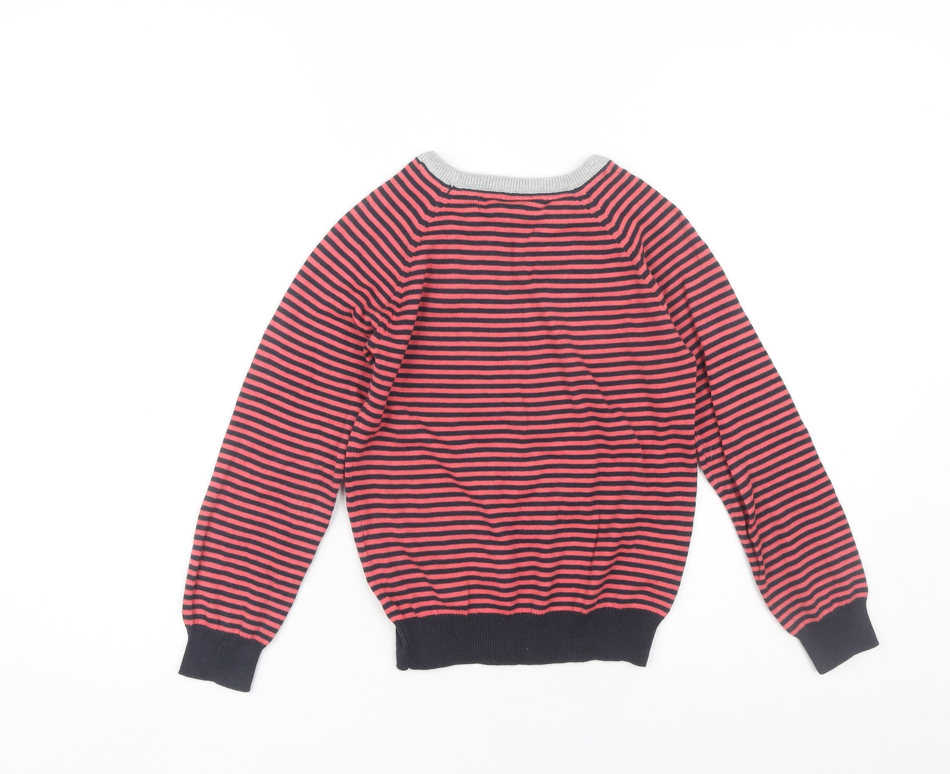 This Cotton On Kids Boys Pullover Jumper is a stylish and comfortable choice for the cooler months. Designed for kids, this jumper features a vibrant red and navy striped pattern, making it a fun addition to any wardrobe. The crew neck and long sleeves offer extra warmth, making it suitable for both autumn and winter seasons. Made from 100% cotton, this jumper is not only soft against the skin but also machine washable for easy care. Its regular fit and lightweight fabric ensure your child can move freely and comfortably throughout the day. Perfect for casual occasions, this jumper can easily be paired with jeans or trousers for a relaxed, stylish look. Though in excellent condition, this item does not have its original sales tags. Add a pop of colour to your child's wardrobe with this versatile pullover jumper.