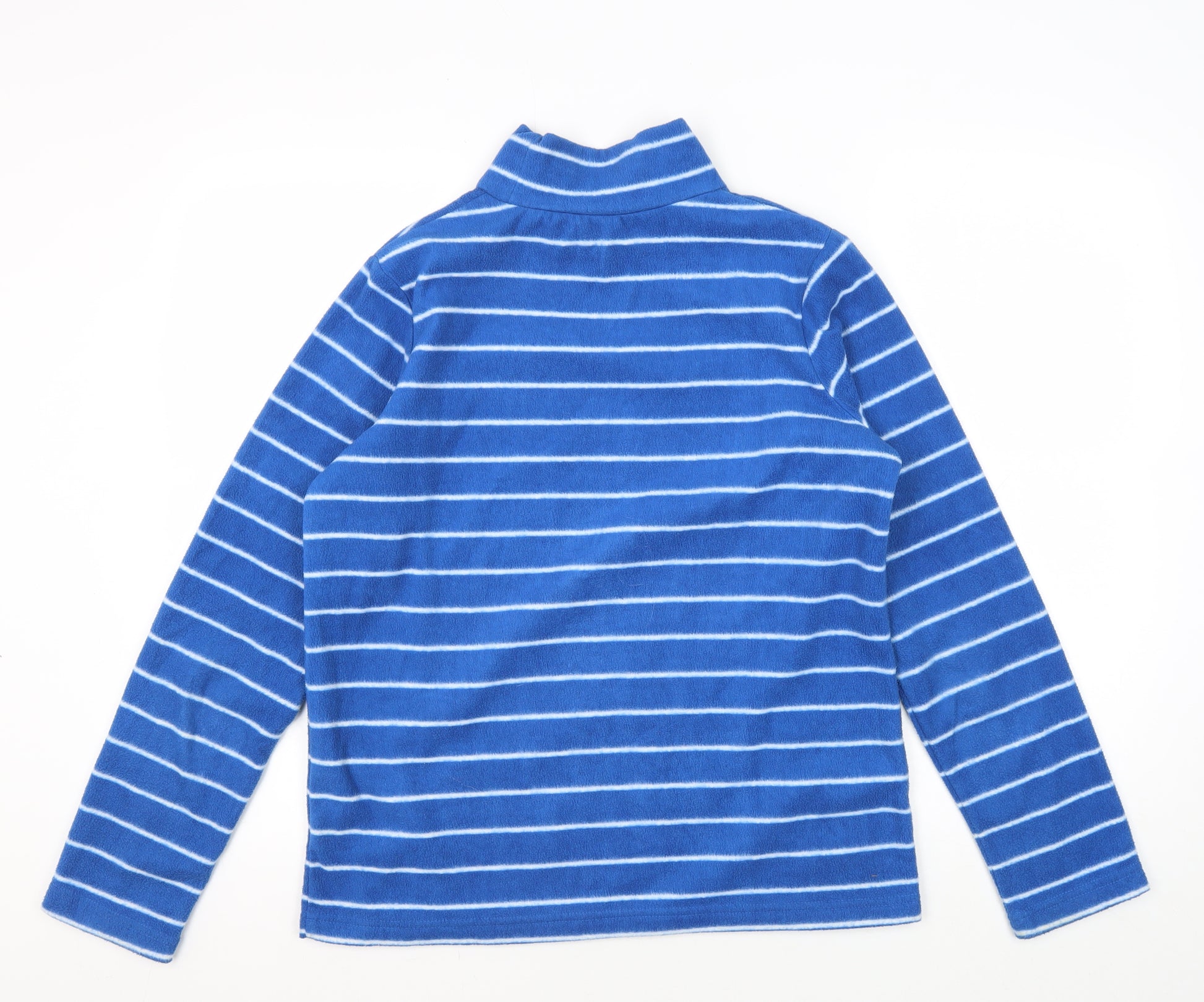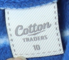 Explore comfort and style with this charming Cotton Traders sweatshirt, available in a rich blue tone with white stripes. Expertly crafted to suit the needs of fashion-forward women, this regular fit sweatshirt is perfect for casual outings and relaxed occasions. Its timeless mock neck design and long sleeves provide a snug fit, ensuring warmth during the cooler months. Made from 100% polyester, this piece promises durability while maintaining a soft feel against the skin. Designed for modern women, this classic sweatshirt effortlessly combines elegance with everyday functionality. Whether you're running errands or enjoying a laid-back weekend, this garment offers unparalleled comfort. In good condition with a visible mark on the front, the sweatshirt still retains its visual appeal, making it a practical choice for everyday wear. A fantastic addition to any wardrobe, it speaks to those who appreciate a blend of simplicity and sophistication. Get ready to embrace a versatile piece that matches with countless ensembles.