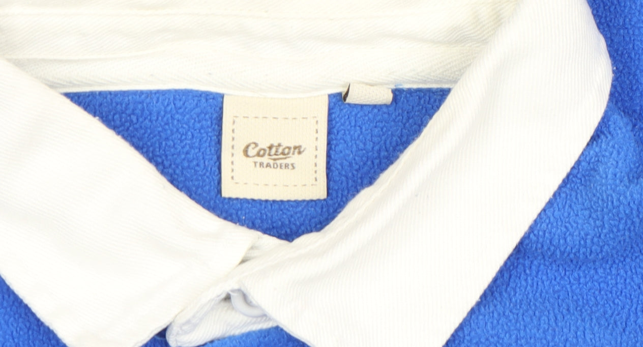 Stay comfortably stylish in this Cotton Traders Men’s Blue Fleece Rugby Polo Shirt, designed for those who appreciate warmth and durability without compromising on casual sophistication. Expertly crafted from soft yet resilient 100% polyester fleece, this long-sleeve top offers lightweight insulation ideal for cooler days. The vibrant blue body contrasts perfectly with the crisp white button-down collar, capturing a timeless rugby-inspired look. The regular fit provides ease of movement, making it equally suitable for outdoor activities like walking or casual weekend wear. The pullover style includes a simple button closure at the neck, giving that classic polo finish while maintaining relaxed comfort. The solid colourway ensures effortless coordination with jeans, chinos, or joggers, making it a versatile piece for any casual wardrobe. Features such as breathable fleece fabric, easy-care maintenance, and a minimal embroidered logo enhance its practicality and appeal. The shirt’s long sleeves and collared neckline lend a polished appearance, suitable for an active lifestyle or laid-back settings alike. Designed with durability in mind, Cotton Traders’ reputation for quality craftsmanship ensures this item retains its shape and comfort wash after wash. This particular piece is in very good pre-owned condition, showing only the slightest signs of previous use, reflecting careful wear and maintenance by its prior owner. Ideal for transitioning between seasons, the fleece texture provides warmth without bulk, while its machine washable properties make upkeep simple. Whether you’re layering it under a jacket for an autumn walk or wearing it on its own for a casual outing, this Cotton Traders fleece polo delivers both practicality and rugged charm. A great blend of British outdoor heritage and everyday functionality, it’s a dependable wardrobe staple ready for wear all year round.