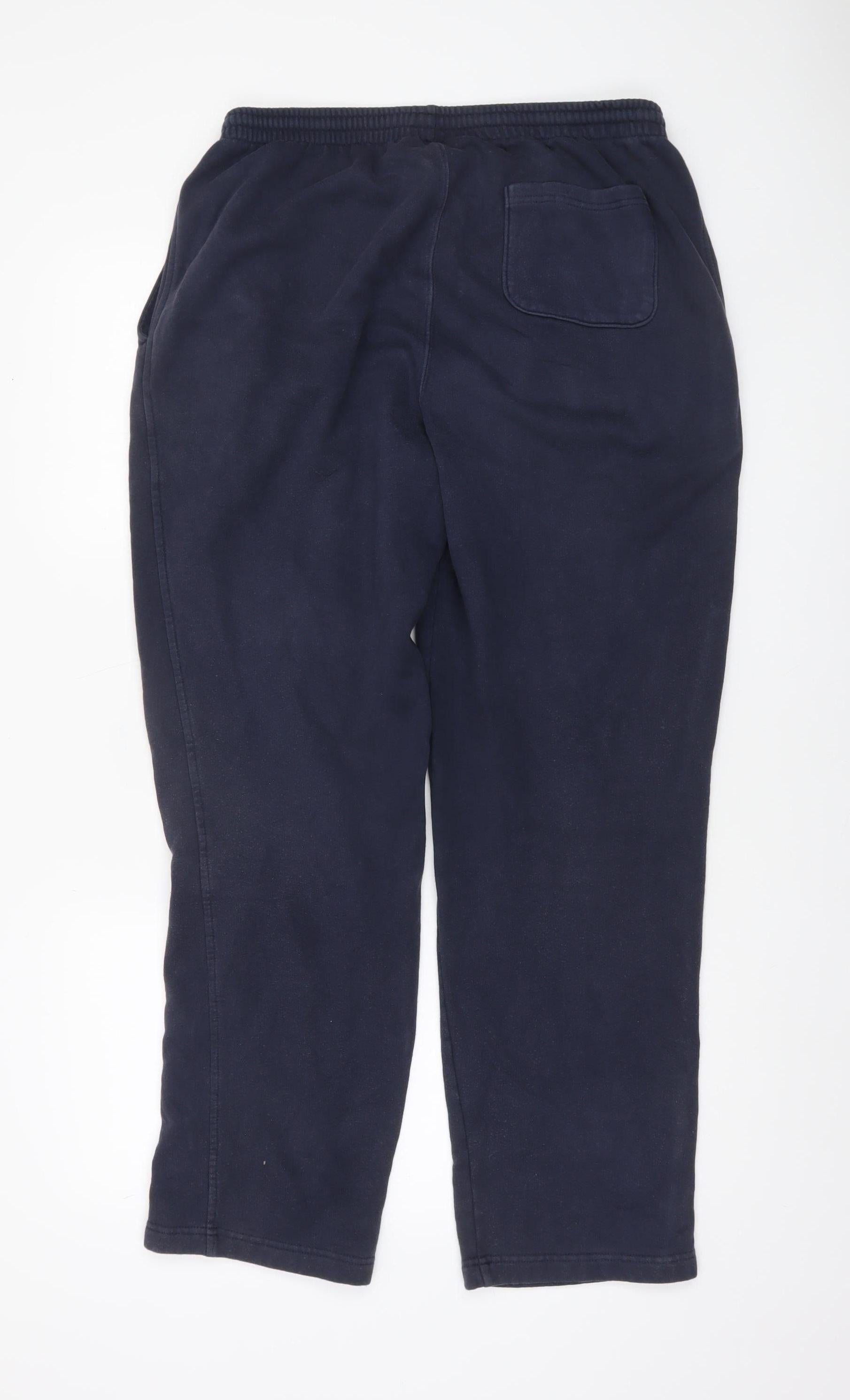These Cotton Traders men's blue sweatpants combine the perfect blend of comfort, style, and durability. Crafted from a soft fleece fabric, they feature a 77% cotton and 23% polyester material composition, balancing breathable comfort with long-lasting quality. The regular fit design with a mid-rise waistline and elasticated waistband ensures a relaxed yet secure feel for everyday wear. The rich navy blue tone provides a timeless look suitable for casual outings, lounging at home, or light outdoor activities. Functional side pockets offer convenience, while the straight leg cut gives a classic silhouette that pairs easily with T-shirts, hoodies, or sweatshirts. Designed for the autumn and winter seasons, these trousers provide reliable warmth without feeling bulky. The soft interior lining enhances comfort, making them ideal for relaxed weekend wear or travel. Featuring subtle logo detailing as an accent, these sweatpants maintain a clean, understated aesthetic that fits well within any casual wardrobe. Machine washable for easy care and practical use, they embody the casual comfort Cotton Traders is known for. With light general wear observed but no damage or faults, this pre-loved pair remains in very good condition, offering excellent value. Whether you’re taking a stroll, running errands, or unwinding at home, these sweatpants deliver reliable everyday comfort and versatile styling. A great addition for anyone seeking quality casual menswear. Grab this essential wardrobe staple today and enjoy simple comfort that lasts. Perfect for pairing with trainers or slippers, these trousers carry effortless appeal for any laid-back occasion.
