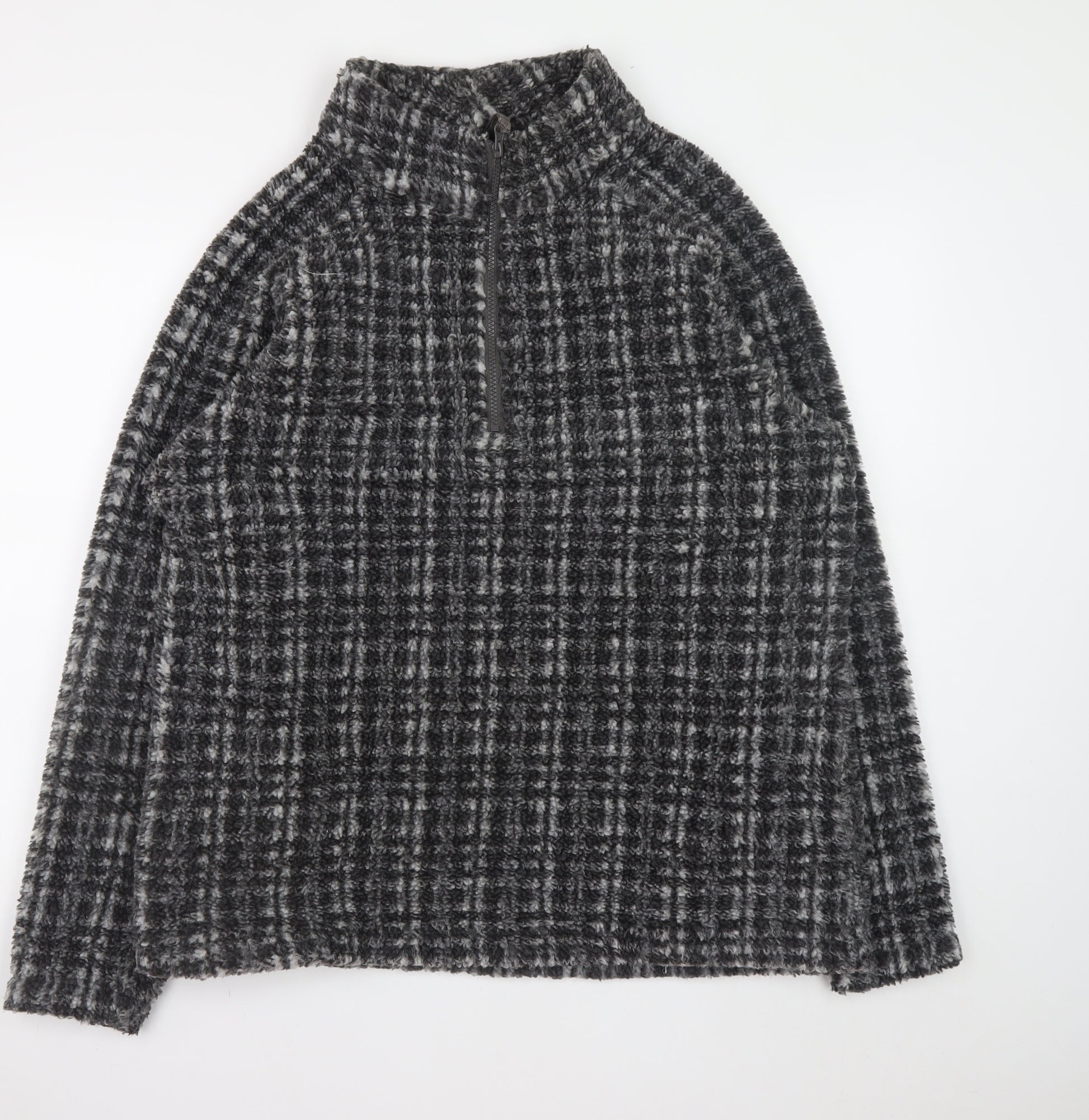 Men’s Grey Check Fleece 1/4 Zip Pullover Sweatshirt L