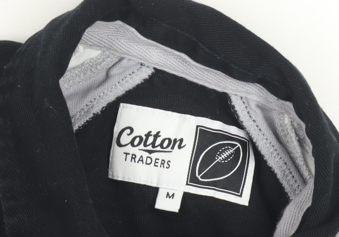 Step into comfort and style with this Cotton Traders Men’s Polo Shirt, perfect for casual outings or sports events. Crafted from 100% cotton jersey fabric, the polo ensures breathability and soft comfort throughout the day. The sleek black design with a standout graphic logo makes it a versatile addition to any man's wardrobe. This classic short sleeve polo with its collared button-down neckline effortlessly captures a sporty vibe, reminiscent of American football themes. Ideal for fans of the Newcastle Falcons, this shirt reflects team spirit seamlessly. Whether you're heading to a game or enjoying a relaxed day out, this polo is designed to suit various occasions all year round. While the shirt displays slight wear suggesting minimal previous use, it remains in excellent condition, free of any noticeable stains or defects. Pair it with your favourite jeans or shorts for a laid-back yet sophisticated look. Suitable for activewear and casual encounters alike, this medium-sized polo exemplifies regular fit comfort, making it a reliable choice for the modern man. Machine washable for easy care, this shirt ensures that practicality is never sacrificed for style, allowing you to enjoy its qualities time and again. Don this Cotton Traders polo shirt and showcase a balanced blend of athletic and relaxed aesthetics, promising both quality and fashion reliability.