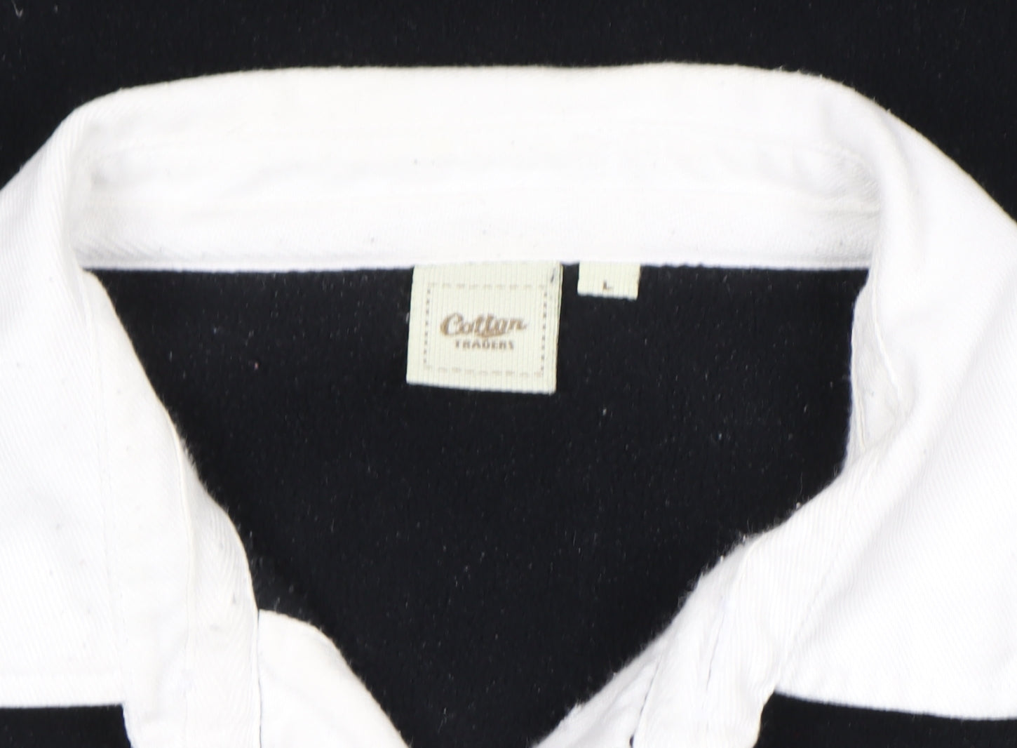 Cotton Traders Men’s Blue Fleece Rugby Polo Shirt Long Sleeve Size L