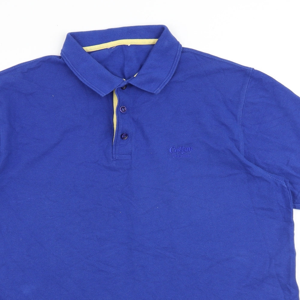 Mens Blue 100% Cotton Polo Size L Collared Button
