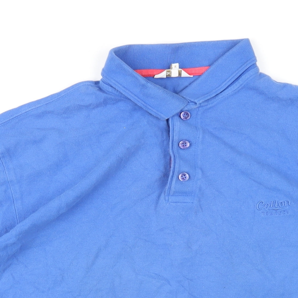 Mens Blue Cotton Button-Up Size M Collared Button