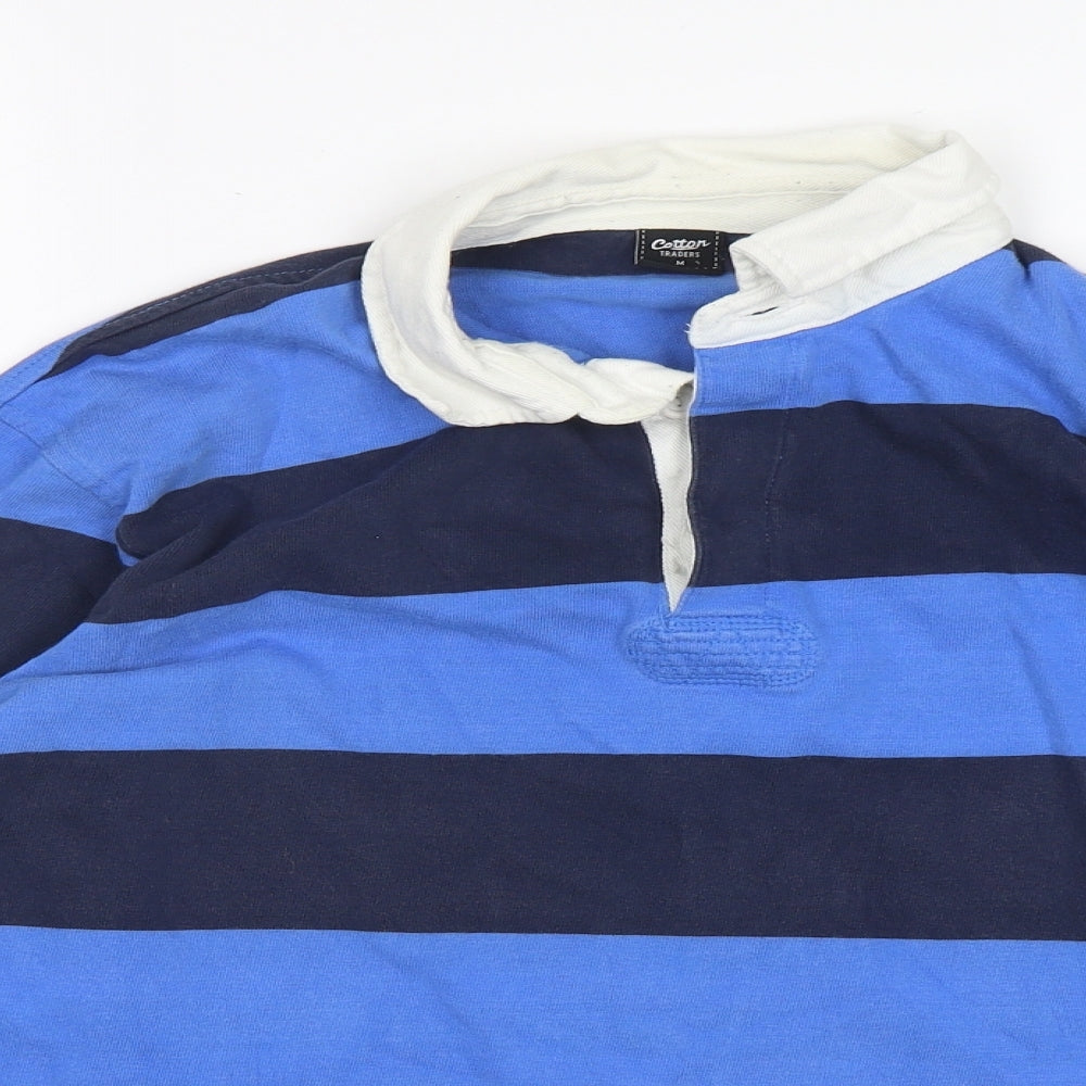 Mens Blue Striped Cotton Polo Size M Collared
