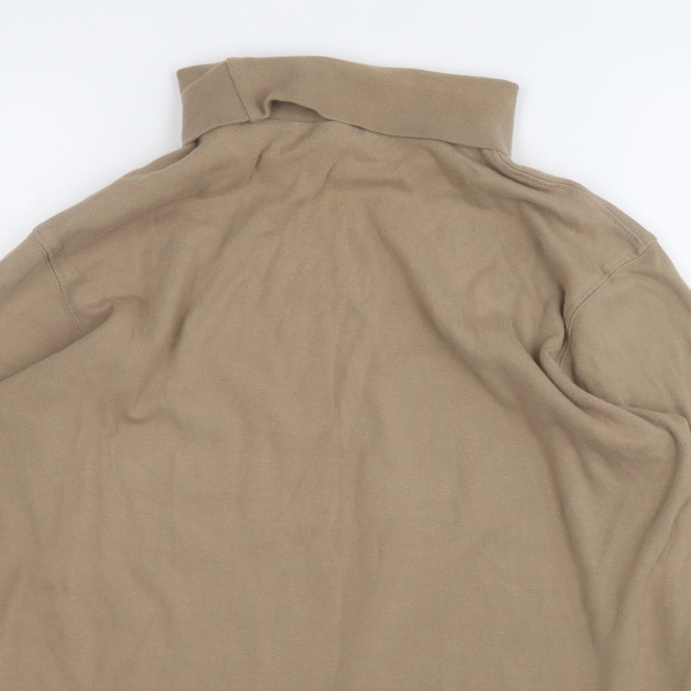 Mens Brown Roll Neck Cotton Pullover Jumper Size L