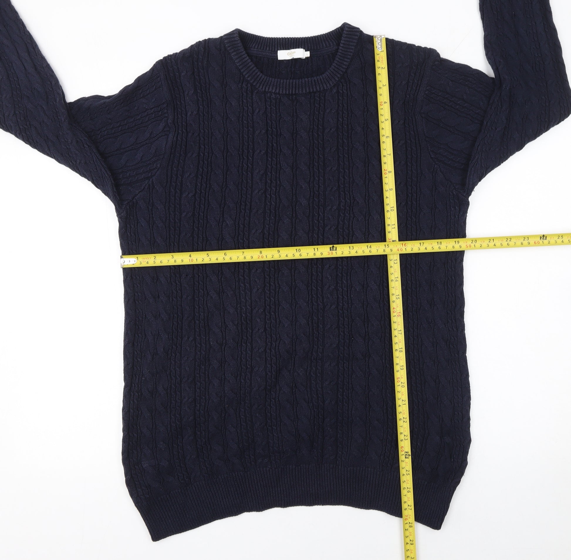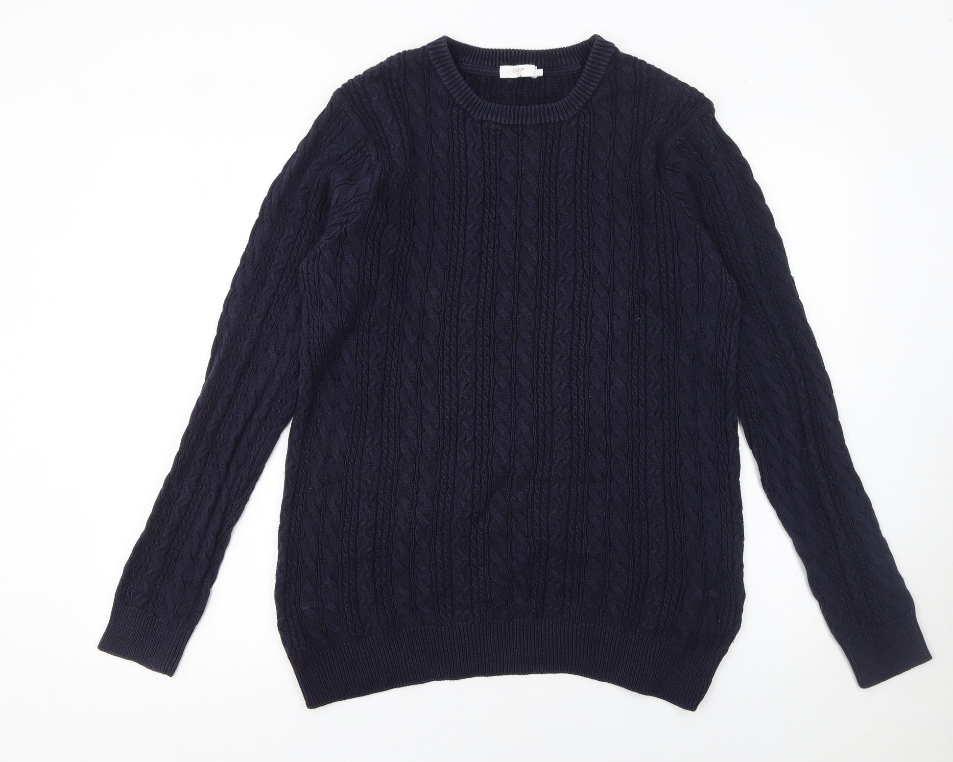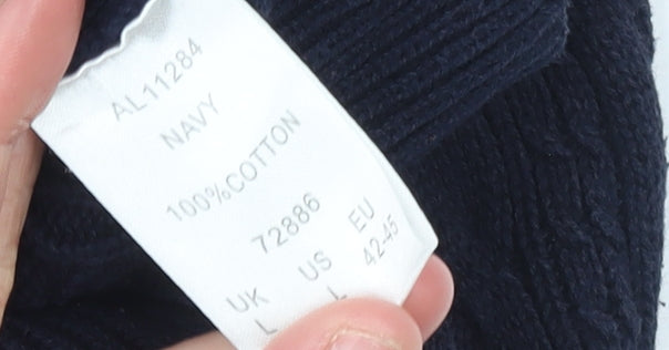 Men's Navy Blue Cable-Knit Cotton Jumper L
