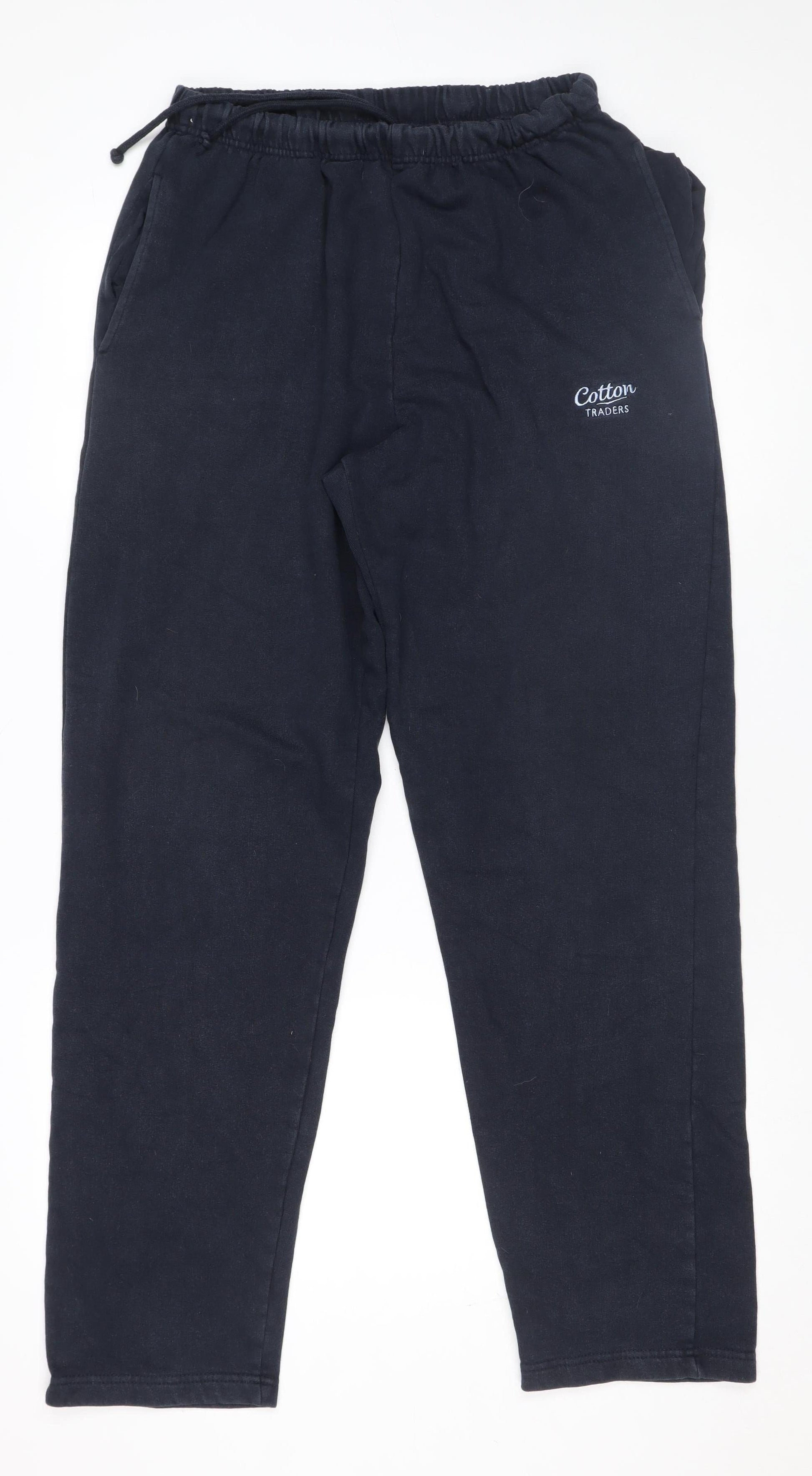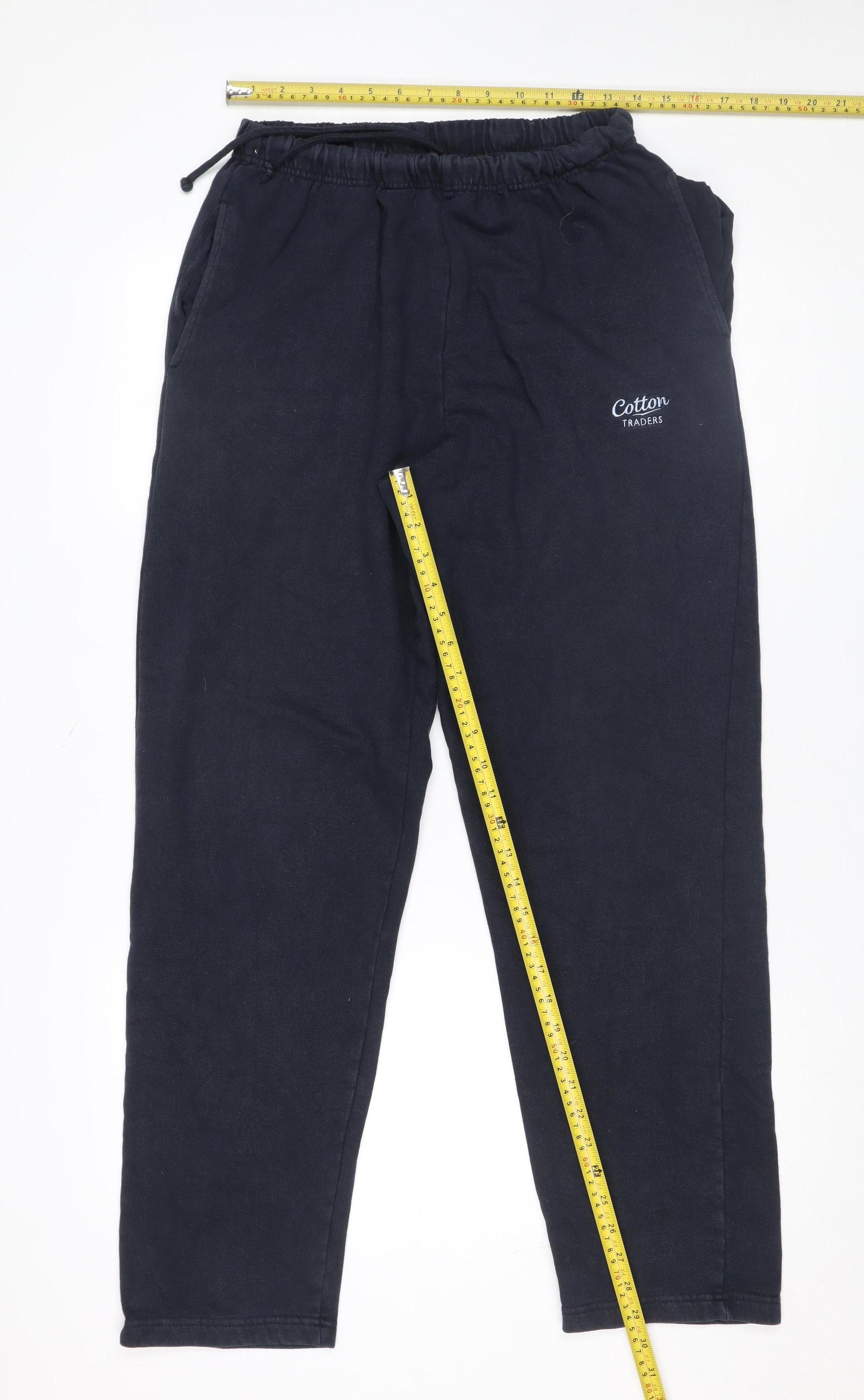 Stay comfortable and stylish during your workout or downtime with these Cotton Traders Men's Navy Blue Sweatpants. Designed in a classic regular fit, these trousers offer a relaxed silhouette perfect for gym sessions, outdoor activities, or simply lounging at home. The medium size ensures a comfortable fit, with an adjustable drawstring waist for added ease of wear. Crafted from a soft fleece fabric blend of 65% cotton and 35% polyester, they provide a breathable yet cosy feel, ideal for cooler days. The navy tone offers timeless versatility, pairing effortlessly with any casual or sportswear ensemble. Featuring practical elements such as an elasticated waistband and side pockets, these joggers balance comfort with function. Their brushed fabric interior enhances warmth and softness, while the lightweight construction makes them suitable for active or leisure use. Perfect for running, training, or relaxed walks, these sweatpants embody effortless everyday style with dependable quality. The minimal logo detailing gives them a subtle branded touch, maintaining a clean, sporty aesthetic. Machine washable for easy care, they are designed to withstand regular wear and maintain their shape over time. Although pre-owned, they remain in very good condition with only light general wear and no noticeable damage, retaining their original structure and comfort. Ideal for both indoor and outdoor casual wear, these sweatpants are an essential, all-season choice for men seeking comfort, practicality, and understated style from a trusted casual brand. Grab this pair today to refresh your activewear collection with a dependable everyday staple that embodies relaxed performance and Cotton Traders’ classic quality craftsmanship.