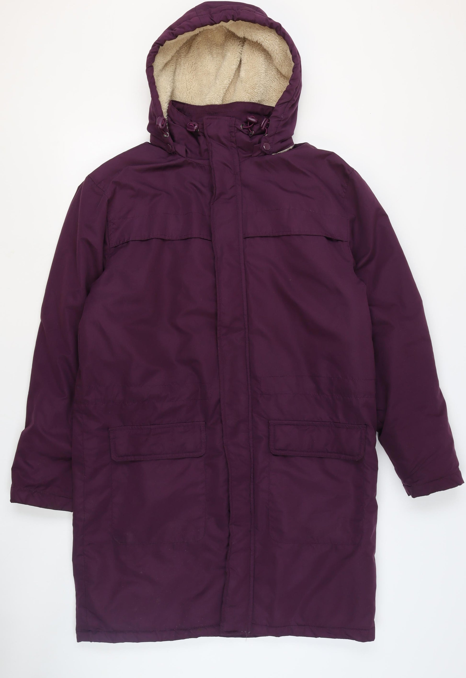 Stay warm and stylish during the cold months with this Cotton Traders men’s purple parka coat in size M. Designed for comfort and practicality, this mid-weight winter jacket features a water-resistant 100% polyester outer shell that helps repel light rain and snow, making it ideal for outdoor walks, daily errands, or winter commutes. The interior and hood are fully lined with soft fleece-effect polyester for superior warmth and cosiness, while the high collar and adjustable hood offer extra protection against wind and chill. The front of the coat features a full zip fastening complemented by press-stud snap closures for enhanced insulation and security. Multiple front flap pockets provide practical storage for everyday essentials, keeping your hands free and warm. A rich purple (wine) colour adds a stylish twist to the classic parka look, suitable for pairing with both casual and functional wardrobes. The size M fit ensures comfortable layering over jumpers or shirts. The lining and materials are fully machine washable for low-maintenance care. Although previously worn, the coat remains in good condition with only some minor marks visible on the sleeve area, adding character without detracting from its overall appeal. Known for quality and durability, Cotton Traders garments are built for the great British weather, and this piece is no exception. Perfect for winter walks, countryside trips, or simply keeping warm on cold days, this coat combines practicality and timeless style. A dependable addition to any man’s outerwear collection, ready to wear for many more seasons to come.