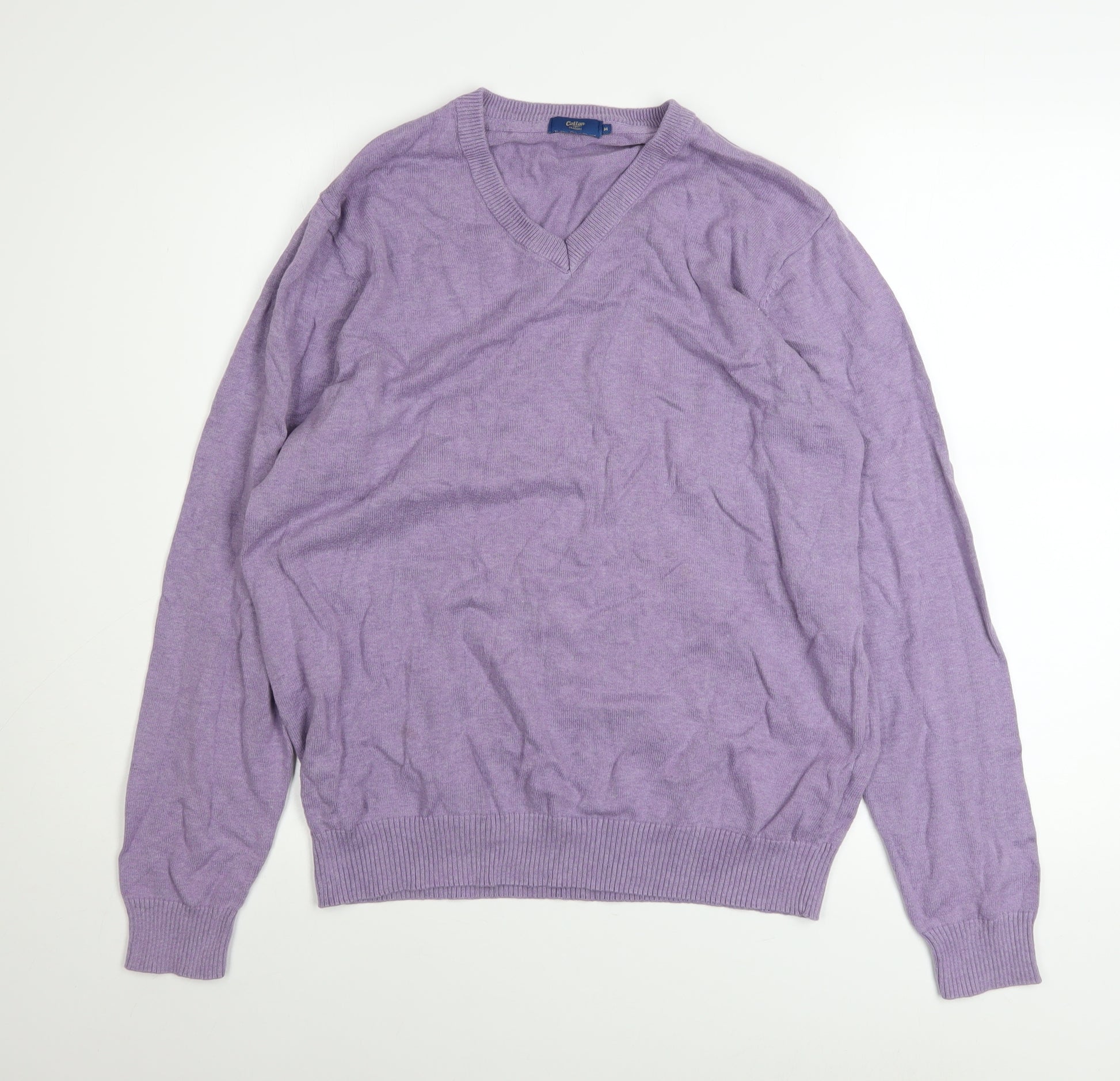 Refresh your wardrobe with this stylish Cotton Traders men’s pullover in a delicate light crocus purple shade. Crafted from 100% cotton, this jumper offers breathable comfort and effortless style, ideal for layering across multiple seasons. The soft knit fabric has a smooth, fine-gauge texture that provides a polished finish. Cut in a classic fit with a flattering V-neckline, it pairs perfectly over shirts for a smart-casual look or under jackets for added warmth. Designed for relaxed everyday wear, this lightweight jumper brings a pop of subtle colour while maintaining versatility for both casual and semi-formal settings. Ribbed cuffs and hem ensure a snug fit while retaining a comfortable shape over time. In excellent used condition, the fabric shows no signs of damage or staining, with only minor creasing that will disappear after washing or a light press. Perfect for spring, autumn, or layering through the cooler months, this jumper suits a range of occasions from relaxed weekends to travel and day-to-day outings. Its machine washable cotton composition ensures easy care and long-lasting quality. Cotton Traders is known for dependable, well-crafted menswear that combines classic design with practical comfort, making this piece an ideal addition to any man’s wardrobe. Whether you’re updating your casual staples or seeking a versatile knit for cooler days, this purple jumper adds understated charm and everyday durability. Size medium for a traditional fit that balances style and ease. A perfect choice for effortless layering and laid-back sophistication.