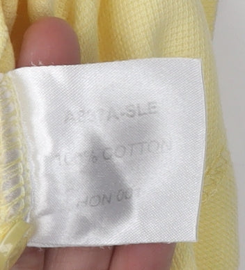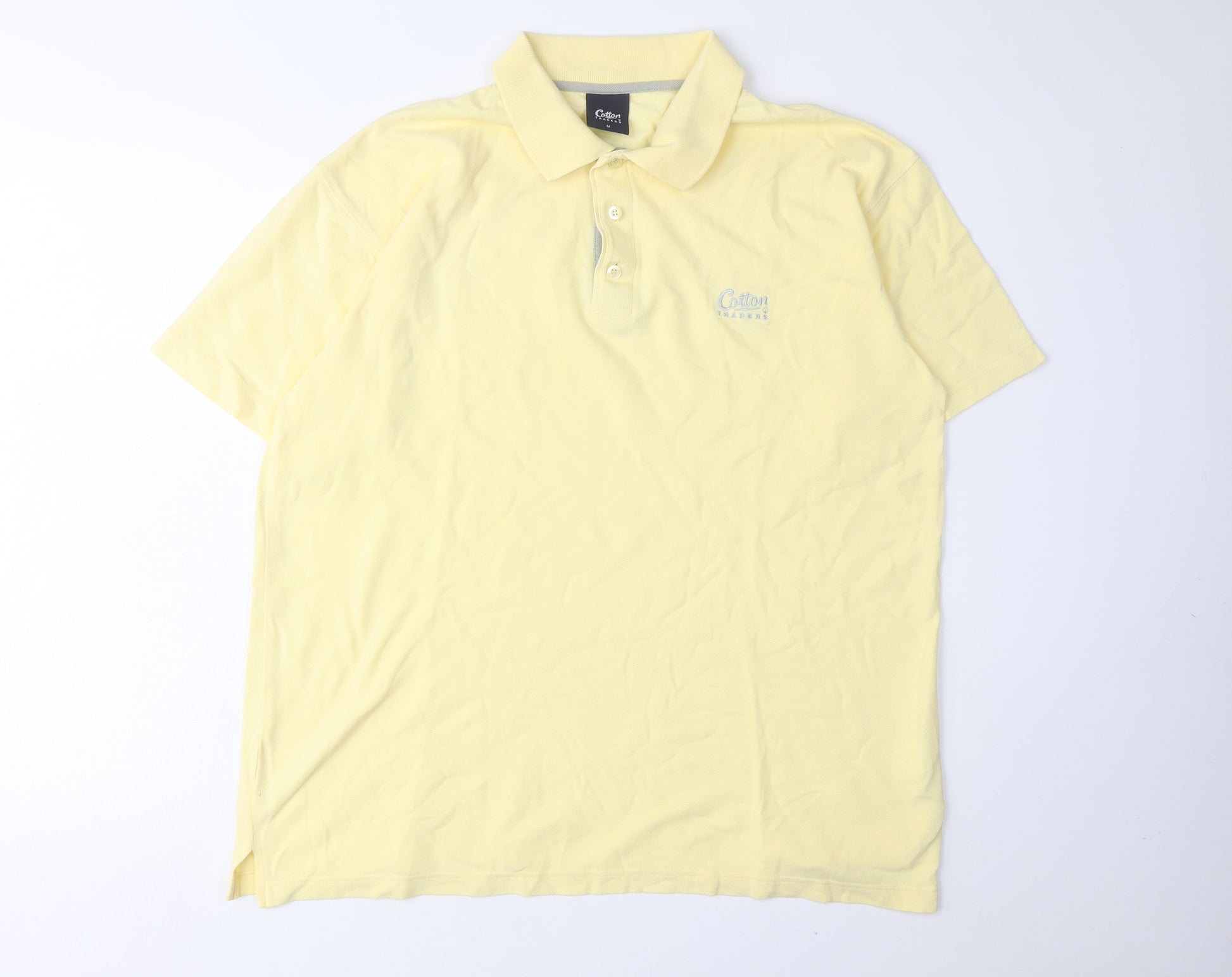 Step up your casual wardrobe with this vibrant yellow polo shirt from Cotton Traders, designed specifically for men who appreciate both comfort and style. This short sleeve classic in size M is perfect for casual occasions, effortlessly blending with your spring and summer outfits. Made from 100% soft cotton jersey, this polo offers a regular fit and a solid pattern, making it a versatile piece that pairs easily with any trousers or shorts.The collared neckline and button closure add a touch of sophistication, while the playful yellow hue ensures you stand out in any crowd. This polo shirt is machine washable, offering you easy care and maintenance. Although this shirt is in excellent condition with no original tags, it displays only minor wrinkles that can easily be smoothed out with regular care.Whether you're headed to a casual meetup with friends or a relaxed day at the park, this polo shirt is a perfect go-to option. Embrace the sunny weather with confidence and style, knowing you look effortlessly smart and fresh. Add this essential piece to your collection today and enjoy the comfort and timeless appeal it brings to your everyday look.