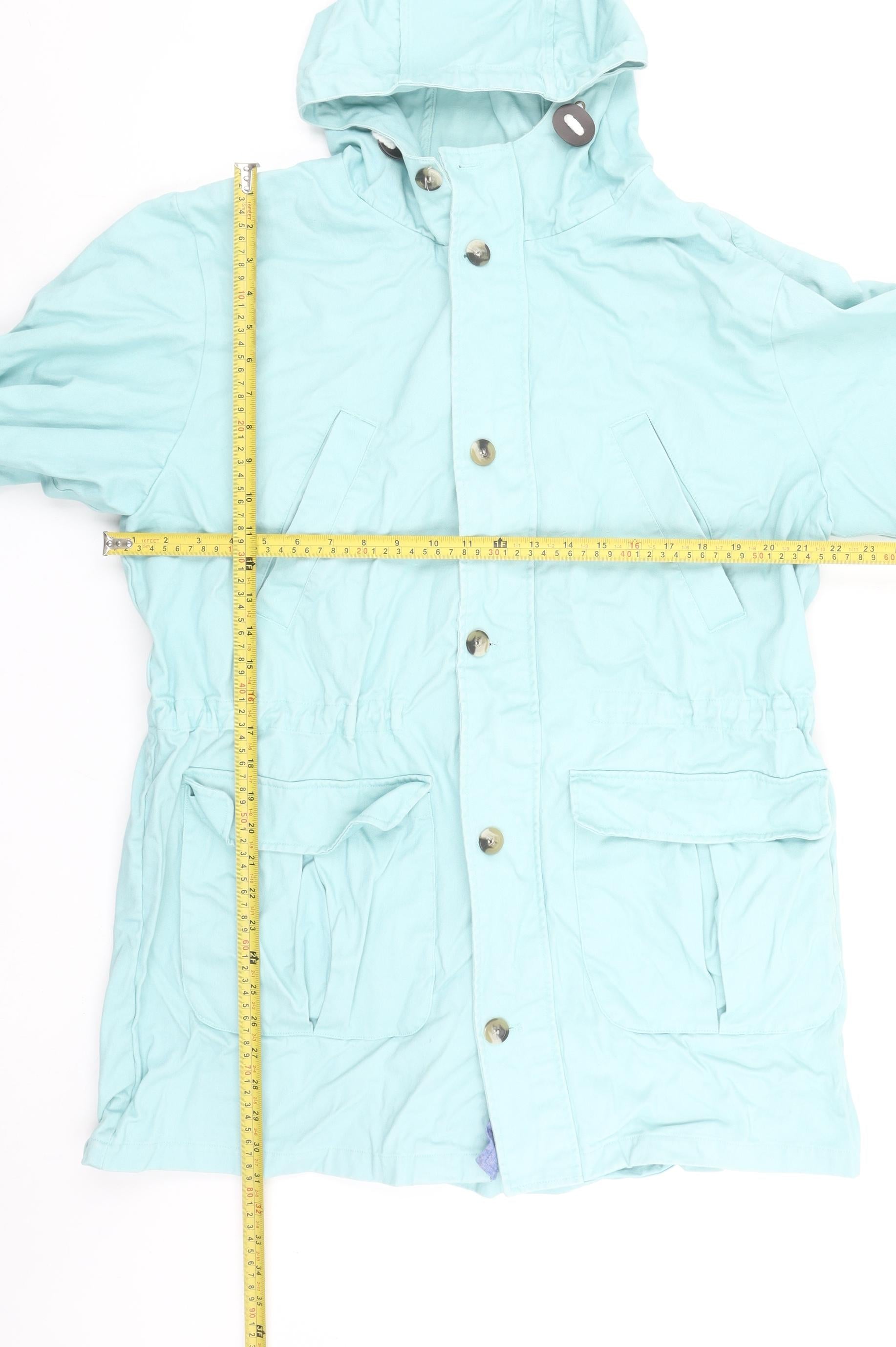 This Cotton Traders women’s parka jacket in a refreshing light blue shade combines comfort, style, and practicality in one timeless piece. Crafted from 100% cotton, this mid-length jacket offers breathability and durability, making it a reliable companion for those unpredictable spring and autumn days. The design includes a functional hood for added protection from the elements and features both button and full zip closures for versatile styling and security. The jacket has an elasticated waist that provides a flattering shape while ensuring comfort and ease of movement. Large flap and slanted pockets add utility and charm, perfect for carrying essentials such as keys, phone, or gloves. The soft canvas-like texture of the cotton outer shell gives this jacket a casual-yet-polished appeal that works well with jeans, leggings, or trousers for laid-back everyday wear. The light blue colour adds a fresh and lively touch to any outfit, brightening your outdoor look while remaining subtle and versatile. Designed for modern women who appreciate functionality, this piece balances effortless style with practical detailing. Whether worn during a weekend stroll, a countryside walk, or your everyday commute, it’s a wardrobe staple that stands the test of time. This pre-owned jacket is in very good condition, showing only light creasing from storage with minimal signs of wear. Its overall structure and quality remain excellent, consistent with Cotton Traders’ reputation for comfort and durability. Machine washable care instructions make it easy to maintain and keep looking great wear after wear. If you’re searching for an all-rounder jacket that provides both protection and casual elegance, this piece ticks every box — comfort, style, and everyday practicality. A dependable choice for layering during transitional seasons, the Cotton Traders blue hooded parka will effortlessly complement your wardrobe while keeping you looking stylish all season long.