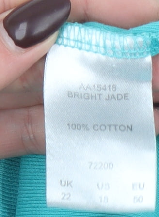 Add a pop of refreshing colour to your casual wardrobe with this lovely Cotton Traders women’s T-shirt in a radiant shade of bright jade green. Made entirely from soft and breathable 100% cotton, this top offers all-day comfort and effortless style. The flattering V-neckline features subtle ruching at the centre, giving a feminine touch that enhances the relaxed silhouette. With its classic 3/4 length sleeves, this versatile piece transitions easily between seasons, making it perfect for layering under jackets and cardigans during cooler months or wearing on its own during warmer days. The jersey cotton fabric ensures a lightweight feel and natural stretch, ideal for comfortable everyday wear. Designed for women who appreciate both style and comfort, this top comes in a UK size 22, providing a relaxed, regular fit that flatters the figure without feeling restrictive. The pullover design makes dressing easy, while the simple solid colour makes pairing with jeans, skirts, or casual trousers effortless. Whether you wear it for leisurely weekends, running errands, or relaxed outings with friends, this T-shirt is as practical as it is stylish. Machine washable for easy care, it's a reliable wardrobe staple that will keep its shape and colour wear after wear. Overall, this Cotton Traders T-shirt offers timeless comfort, a cheerful hue, and a touch of understated elegance — an excellent choice for anyone seeking everyday style made from quality natural fibres. In excellent pre-owned condition, this piece shows only minimal signs of previous wear and no visible faults or marks. A bright, versatile addition to your casual collection, offering the dependable comfort and easy wearability that Cotton Traders is known for.