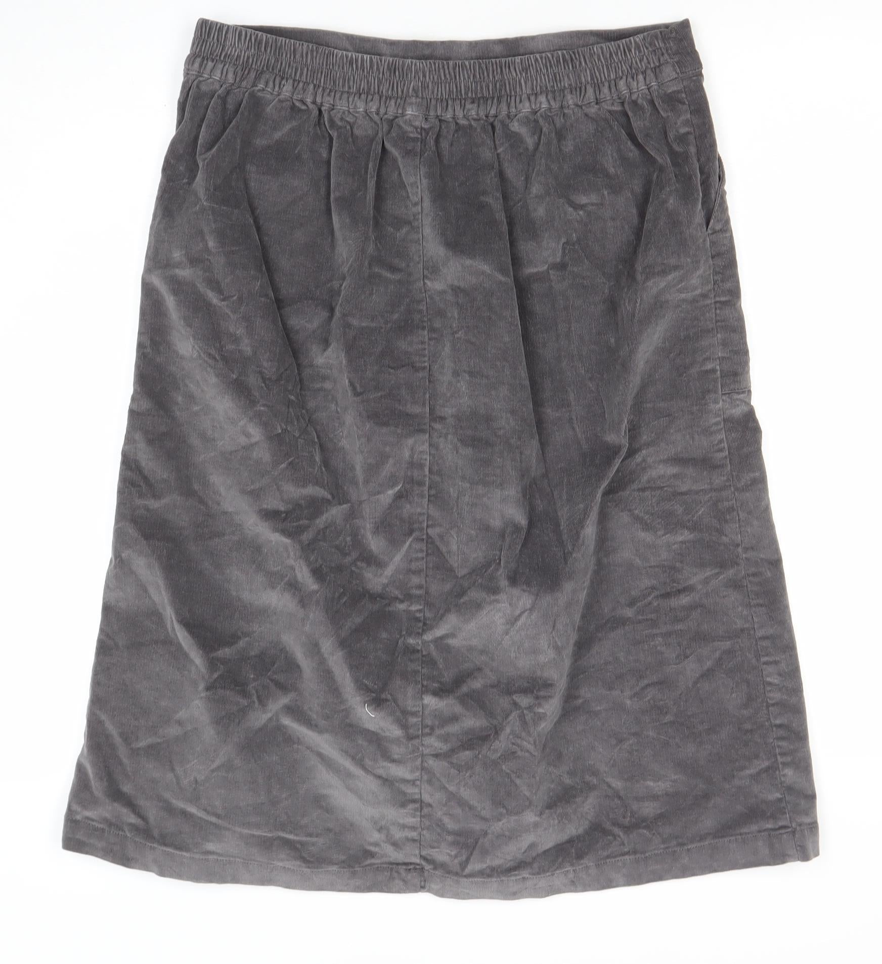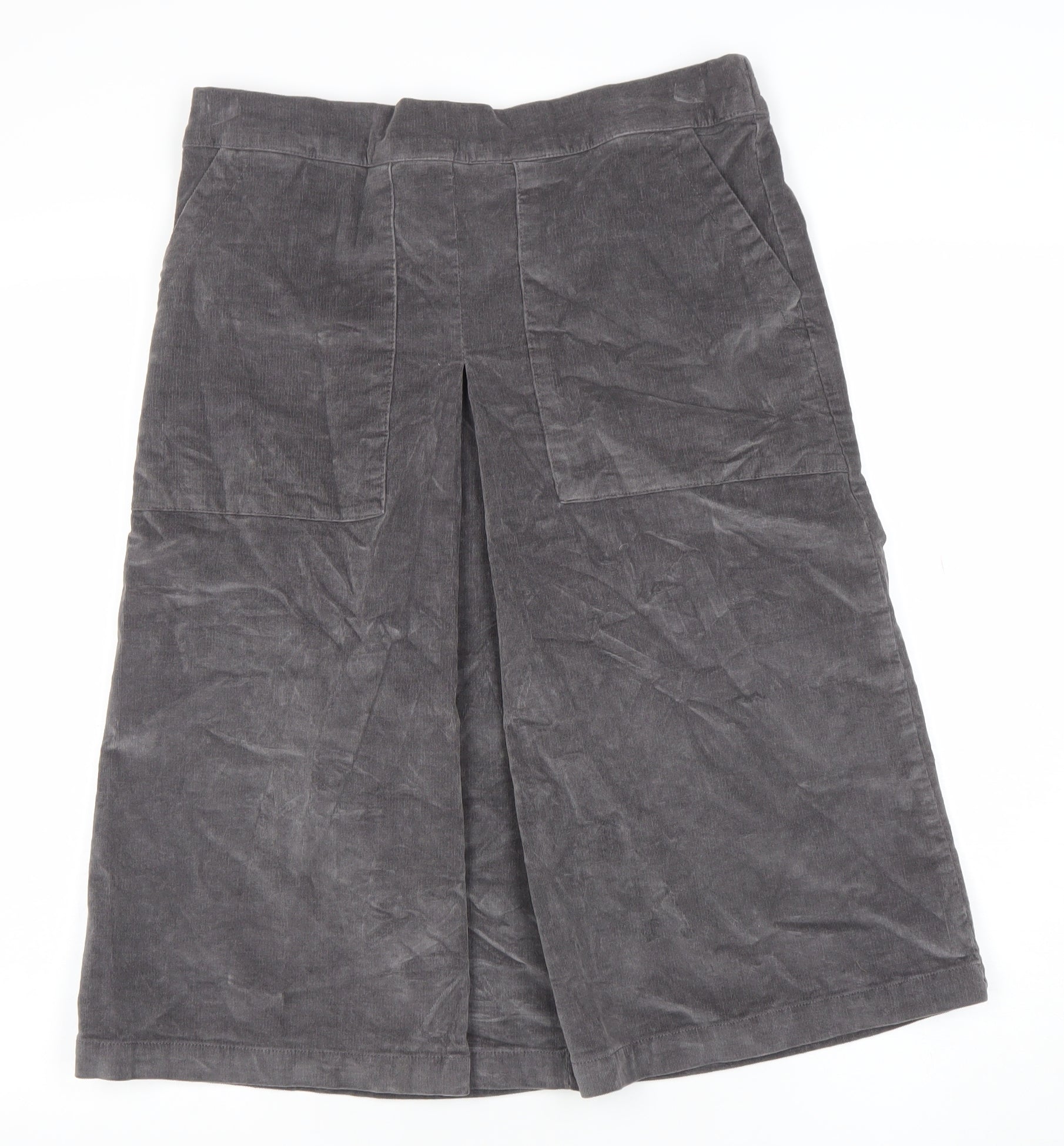 Add timeless casual style to your wardrobe with this Cotton Traders Women’s Grey Corduroy Cargo Midi Skirt in size 12. Crafted from a soft, durable cotton and elastane blend, this skirt offers comfort with a hint of stretch for an easy fit that moves with you. The fine corduroy texture adds a touch of sophistication and warmth, perfect for the cooler seasons. Designed with practical side cargo-style patch pockets, it combines everyday utility with effortless elegance. The front pleat and mid-rise waist create a flattering silhouette that complements many body types. With its comfortable elasticated waistband at the back, the skirt ensures all-day wearability without compromising on style.The classic grey colour lends itself wonderfully to pairing with a variety of tops, from cosy knits to crisp shirts. Wear it for casual days out, relaxed weekends, or even a smart-casual office look. The midi length provides versatile styling options — smart enough for semi-formal wear, but comfortable enough for day-to-day use. The high-quality cotton and elastane blend makes the skirt breathable while maintaining its shape wear after wear.This skirt is machine washable for easy care, making it a practical choice for the modern woman. It’s finished with a zip fastening for secure and convenient wear. Ideal for autumn and winter, this piece will pair beautifully with boots or trainers for an effortlessly on-trend look. Versatile, flattering, and stylish — a classic wardrobe staple from Cotton Traders that combines comfort and everyday elegance for all-season wear.This gently used skirt is in excellent condition with only light signs of wear and some minor creasing consistent with storage. A fantastic value choice for anyone seeking durable yet fashionable comfort wear. Perfect for both casual and semi-casual occasions, it’s a dependable and stylish piece you’ll return to season after season.