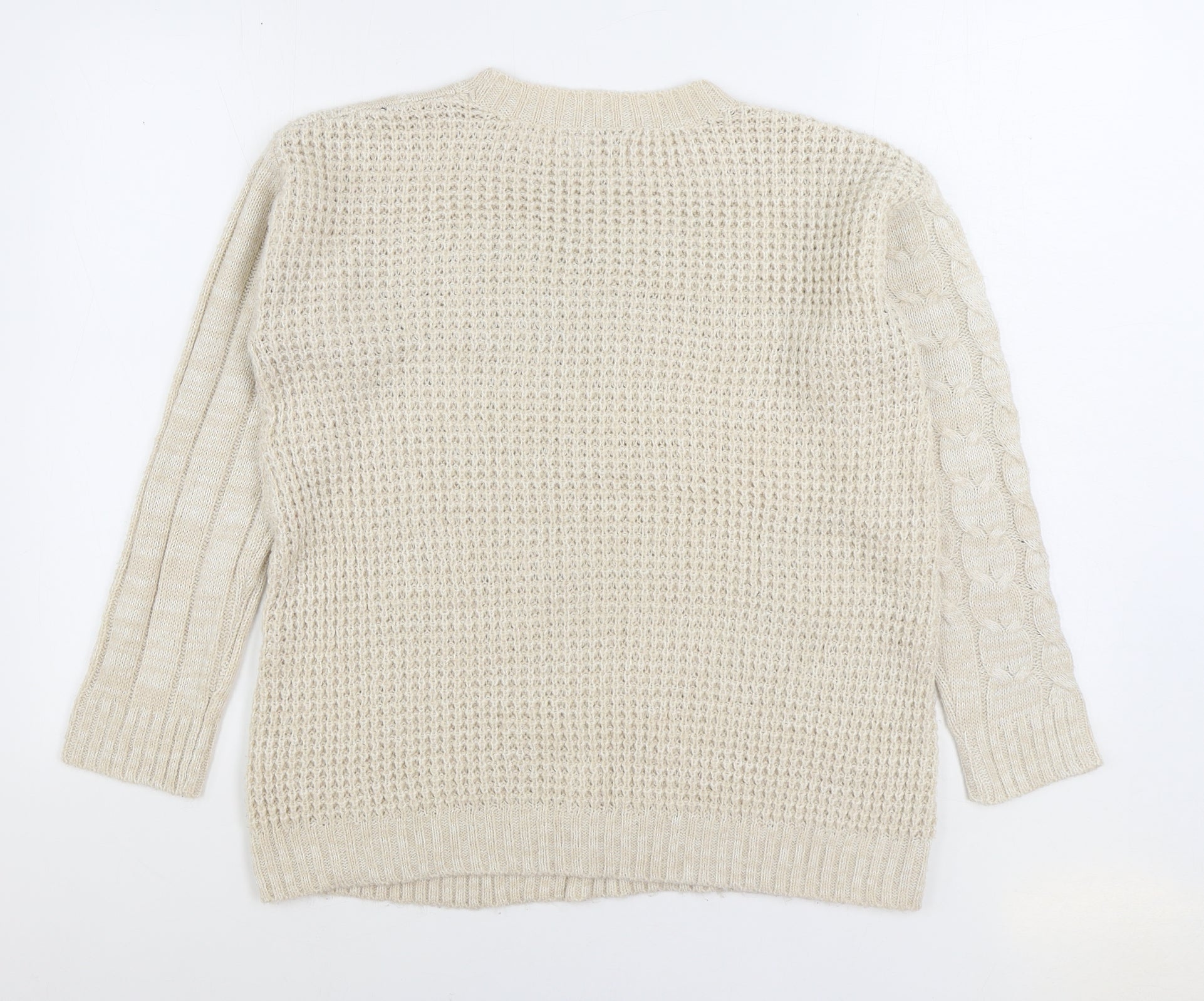 Womens Beige Round Neck Acrylic Pullover Jumper Size 10