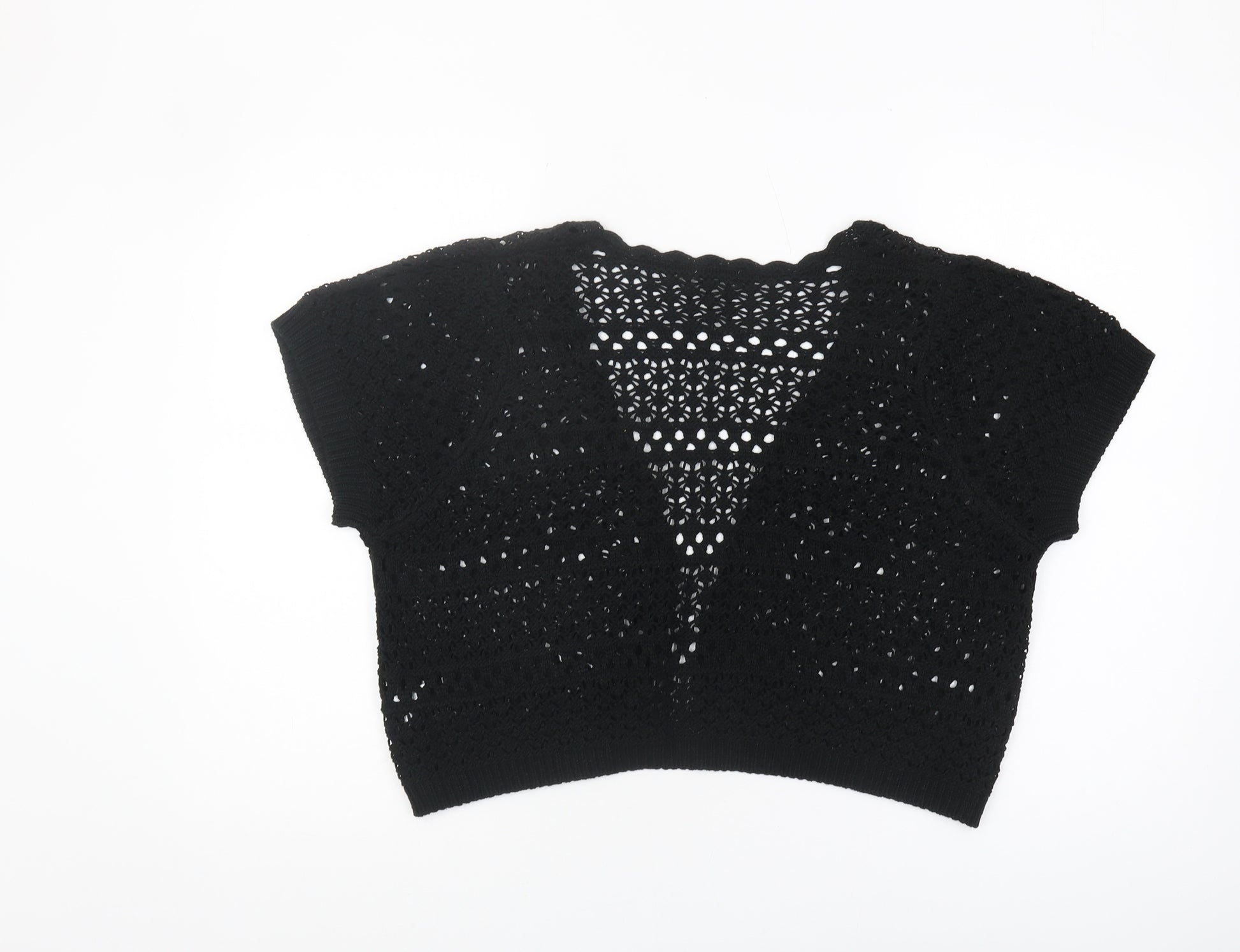 Elevate your wardrobe with this elegant Cotton Traders Women's Black Crochet Cardigan, perfect for adding a touch of sophistication to any casual outfit. Crafted from lightweight acrylic, it's ideal for the warmer months of spring and summer. The cardigan features an open-knit pattern that exudes chic style, making it a must-have addition to your collection.Designed with a regular fit, this cardigan offers comfort and style for women of size 14. Its short sleeves provide a flattering silhouette while keeping you cool. The classic black colour ensures versatility, allowing you to pair it effortlessly with any ensemble. Whether heading out for a casual day trip or wanting a sophisticated cover-up for the evening, this cardigan is a fantastic choice.The absence of additional accents and patterns ensures a minimalist, modern look, making it easy to accessorise according to your preference. Despite its simplicity, the soft, crocheted fabric adds texture and depth to your appearance, ensuring you stand out with understated elegance.Conditioned as excellent with no visible damage, this cardigan maintains its original charm and quality. It's machine washable, allowing for easy and hassle-free maintenance. Whether styled over a summer dress or paired with jeans and a top, this Cotton Traders cardigan will surely become a staple piece in your wardrobe.Price: £15.75