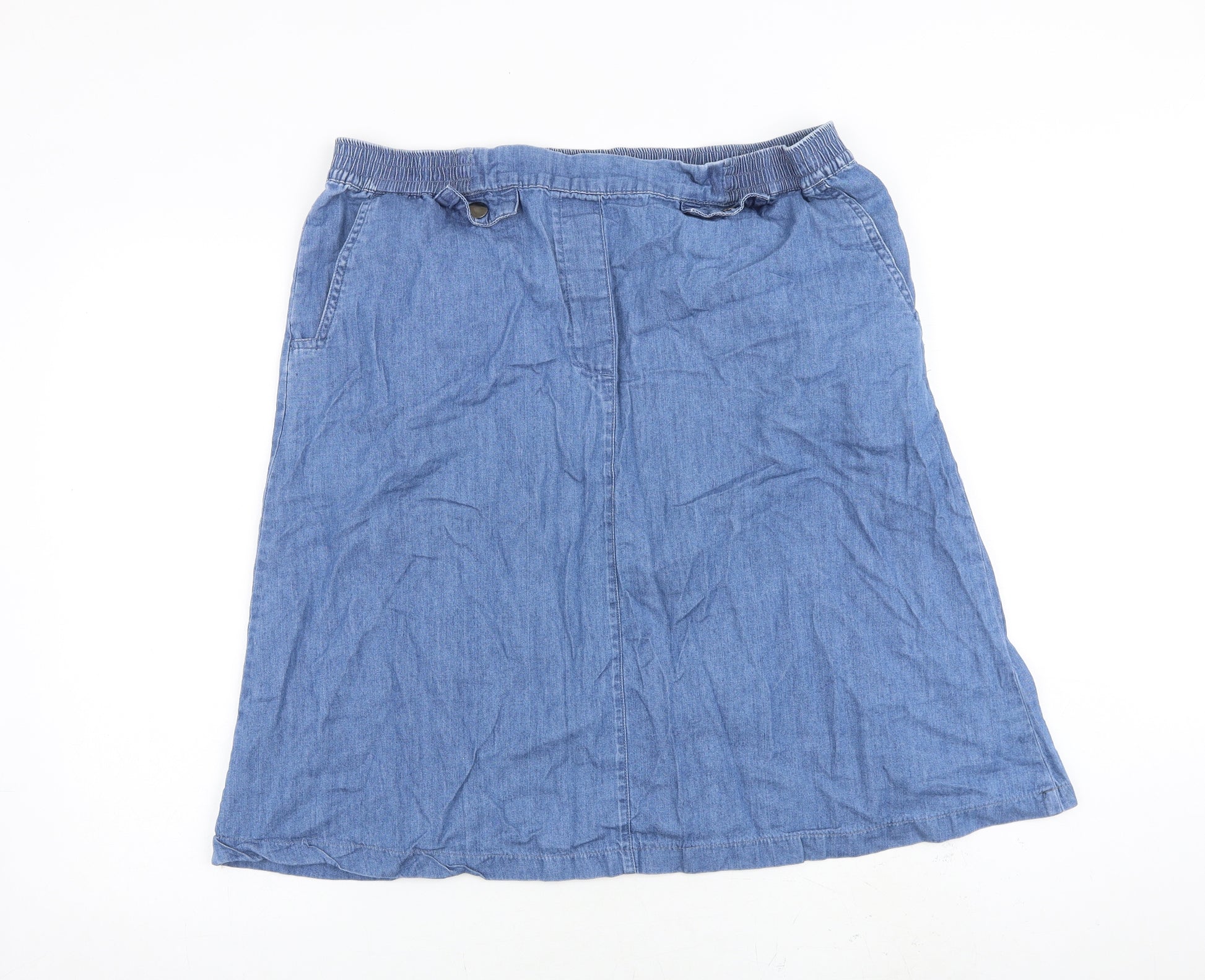 Womens Blue Cotton A-Line Skirt Size 18 Button