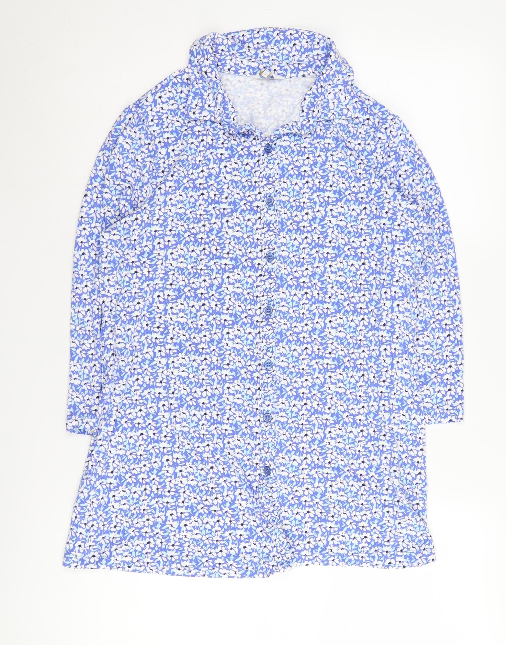Women's Blue Floral Button-Up Tunic Size 8