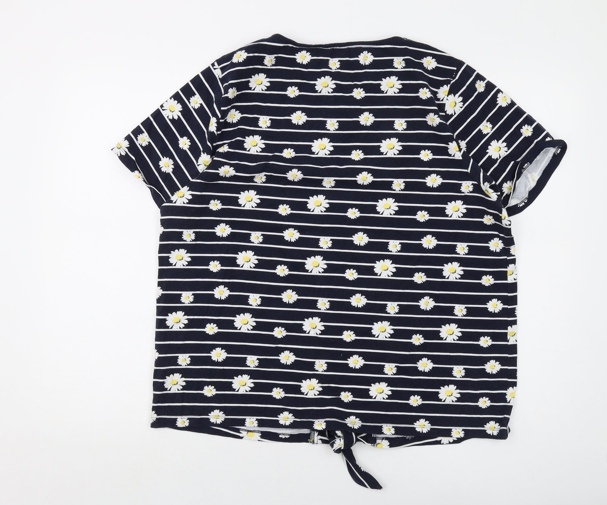 Womens Blue Floral Cotton Basic T-Shirt Size 20 Round Neck