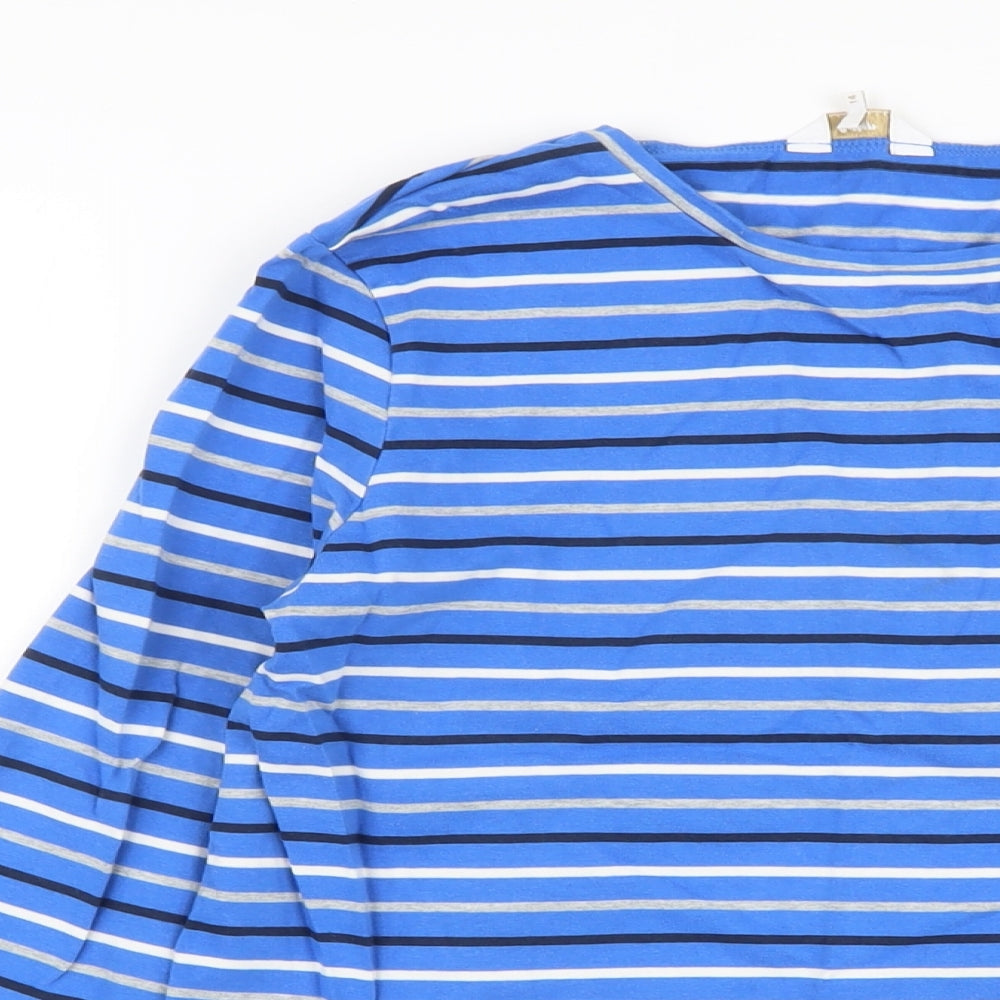 Womens Blue Striped Cotton Basic T-Shirt Size 14 Crew Neck