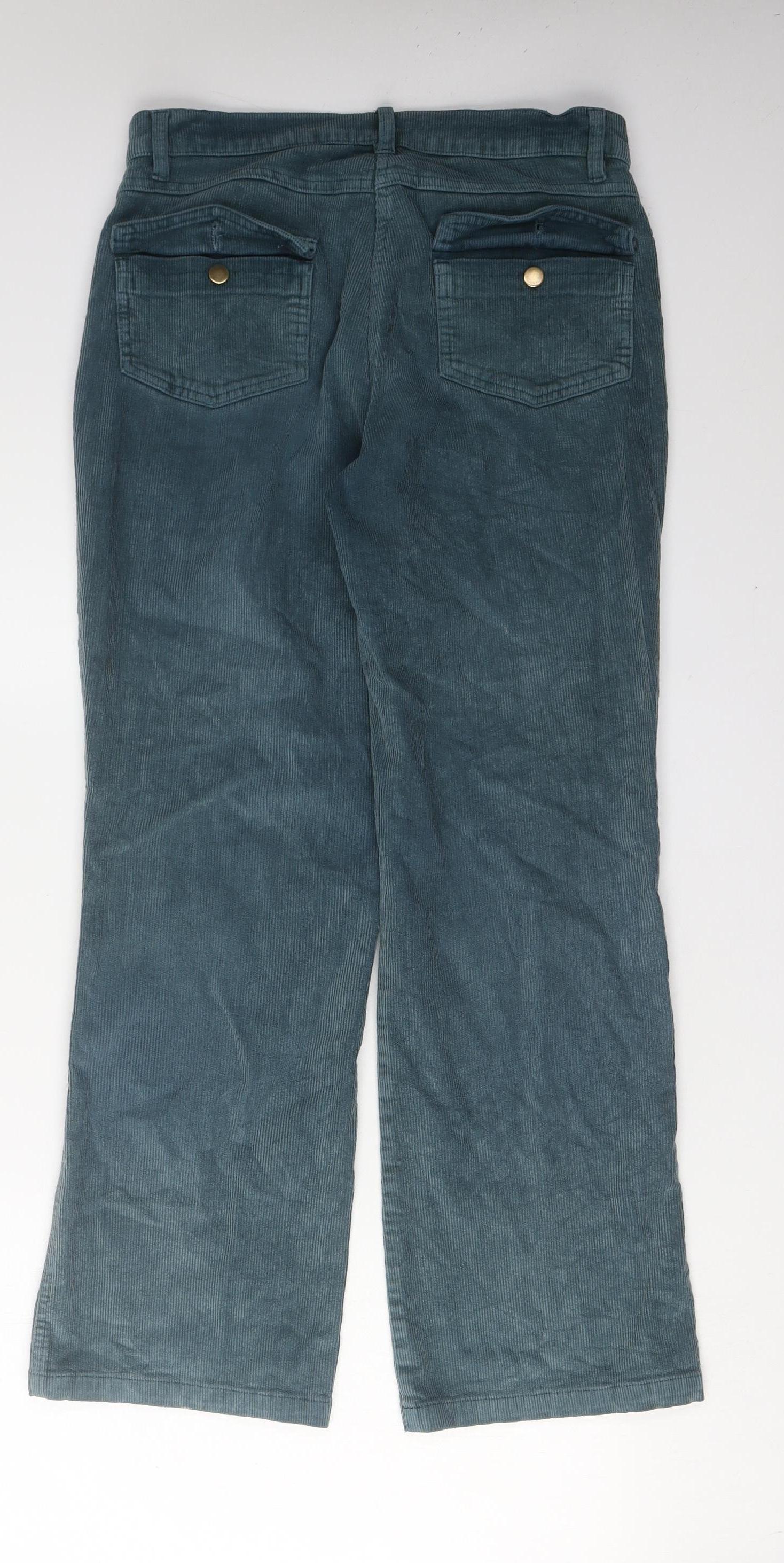 Step into comfort and style with these Cotton Traders Women's Green Corduroy Trousers. Expertly crafted for the modern woman, these trousers combine the classic feel of corduroy with a flattering wide-leg cut. Ideal for the autumn and winter months, their rich green hue adds a touch of sophistication to any casual outfit. Made from a blend of 98% cotton and 2% elastane, these trousers ensure a comfortable stretch without compromising on quality. The regular mid-rise fit offers ease of movement while maintaining a sleek silhouette. Perfect for casual outings, these trousers are finished with practical button closures and pockets, enhancing their functional appeal. Despite some visible wear, they remain in very good condition, ready to be worn and loved. Pair them with a simple tee or a cozy sweater for a laid-back yet stylish look. Embrace the durability and classic design of these corduroy trousers to elevate your everyday style with Cotton Traders.