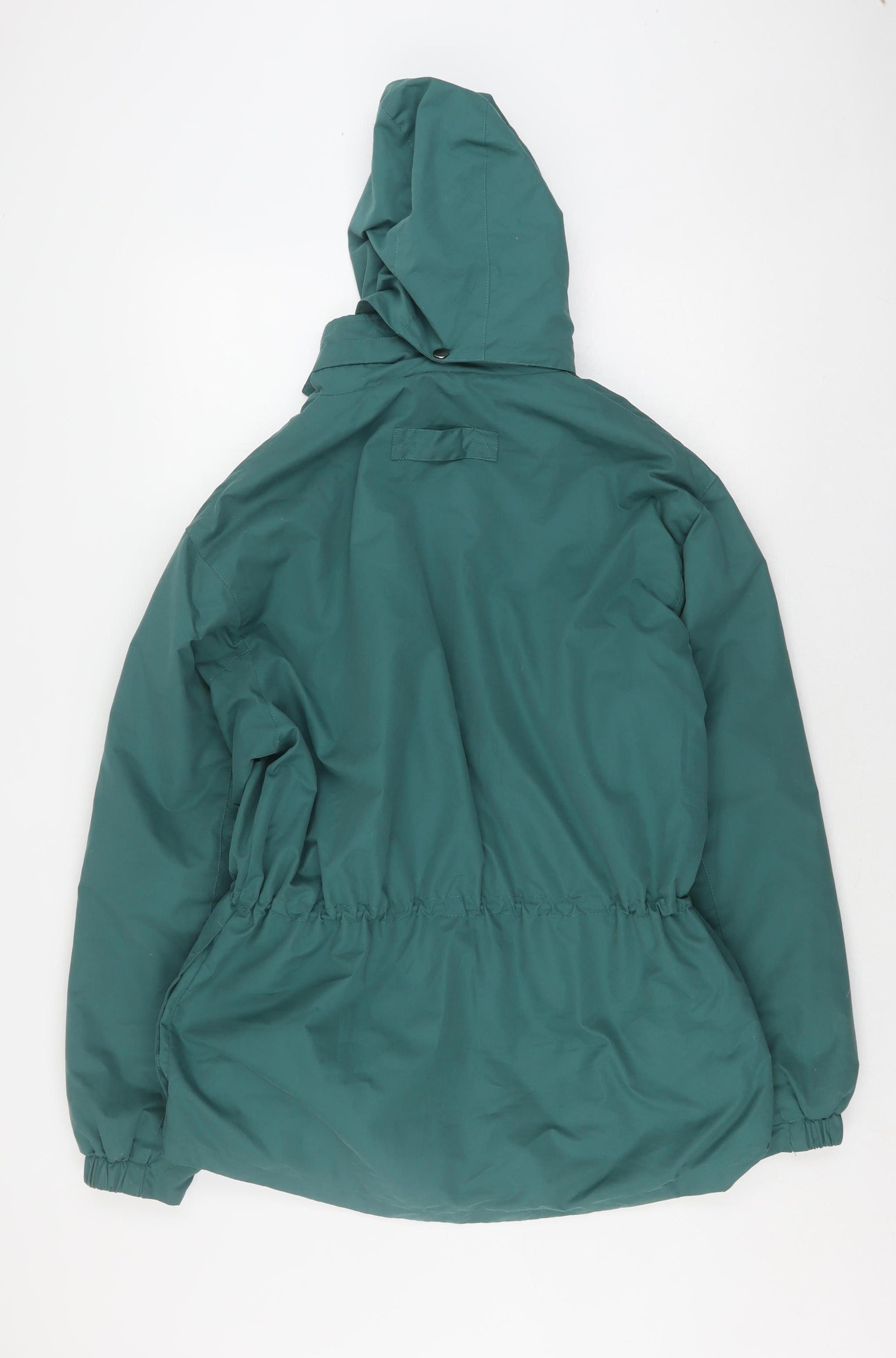 Embrace the cool weather with this stylish and functional parka jacket from Cotton Traders. Designed for women who appreciate comfort and fashion, this green jacket is perfect for autumn and winter. Made from 100% polyester, it offers a durable and softshell construction, ideal for casual wear. The full zip closure and elastic waist enhance fit and comfort, while the hood provides added protection against the elements. Featuring a regular fit, mid-length cut, and long sleeves, it ensures you stay warm without compromising on style. The jacket is machine washable, making maintenance a breeze. An excellent addition to any wardrobe, this parka is available in a medium size and fits regular women's sizing. Ideal for outings, errands, or just a cozy day out, it serves as a versatile piece to layer over your favourite outfits. No visible flaws noted, ensuring you enjoy a gently used piece that looks as good as new. Add a touch of elegance and practicality to your collection with this beautifully designed parka.