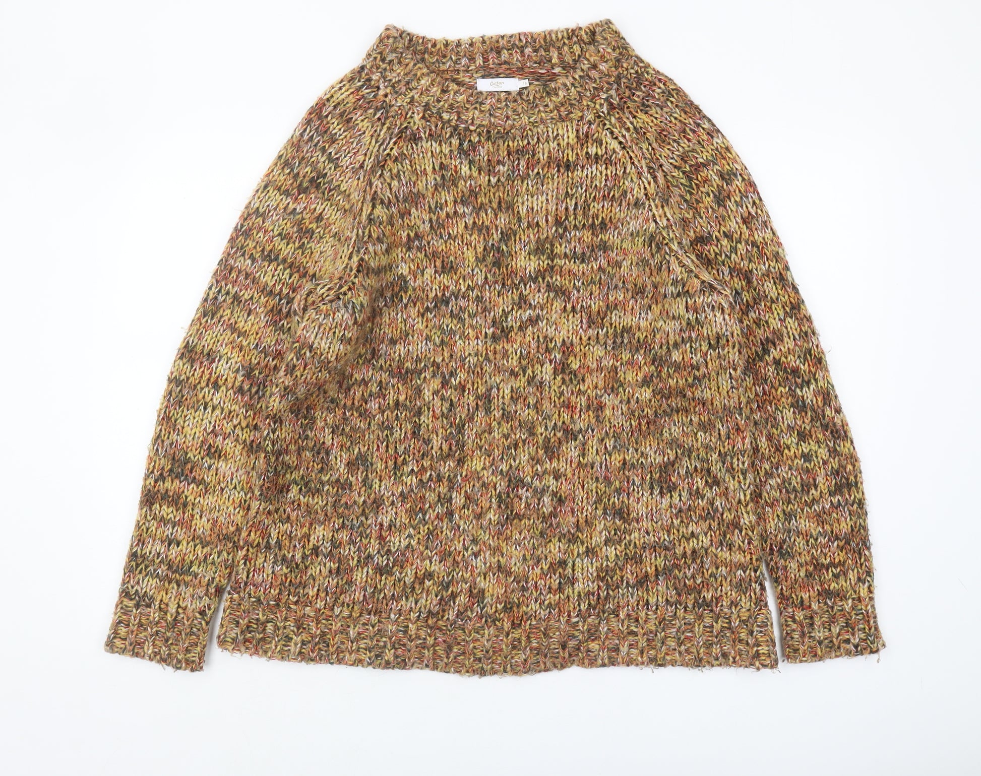 Elevate your wardrobe with this stylish and comfortable Women's Multicoloured Pullover Jumper from Cotton Traders. Perfectly designed for casual occasions, this jumper features a vibrant mix of colours that blend harmoniously, offering a versatile and chic look. Crafted from high-quality acrylic material, it assures warmth and comfort, making it ideal for the cooler autumn and winter seasons. The relaxed fit and chunky-knit style provide a cosy feel, while the raglan sleeves allow for a comfortable range of movement. The classic design of this pullover makes it a timeless piece, suitable for pairing with jeans or skirts. Whether you're heading out for a casual day or enjoying a relaxed weekend at home, this jumper promises to keep you stylishly comfortable. Don't miss out on adding this must-have autumn and winter essential to your collection. Its excellent condition ensures you get value for your money, with no visible wear noted. Embrace the vibrant colours and classic style of this Cotton Traders jumper, perfect for injecting some warmth and personality into your wardrobe.
