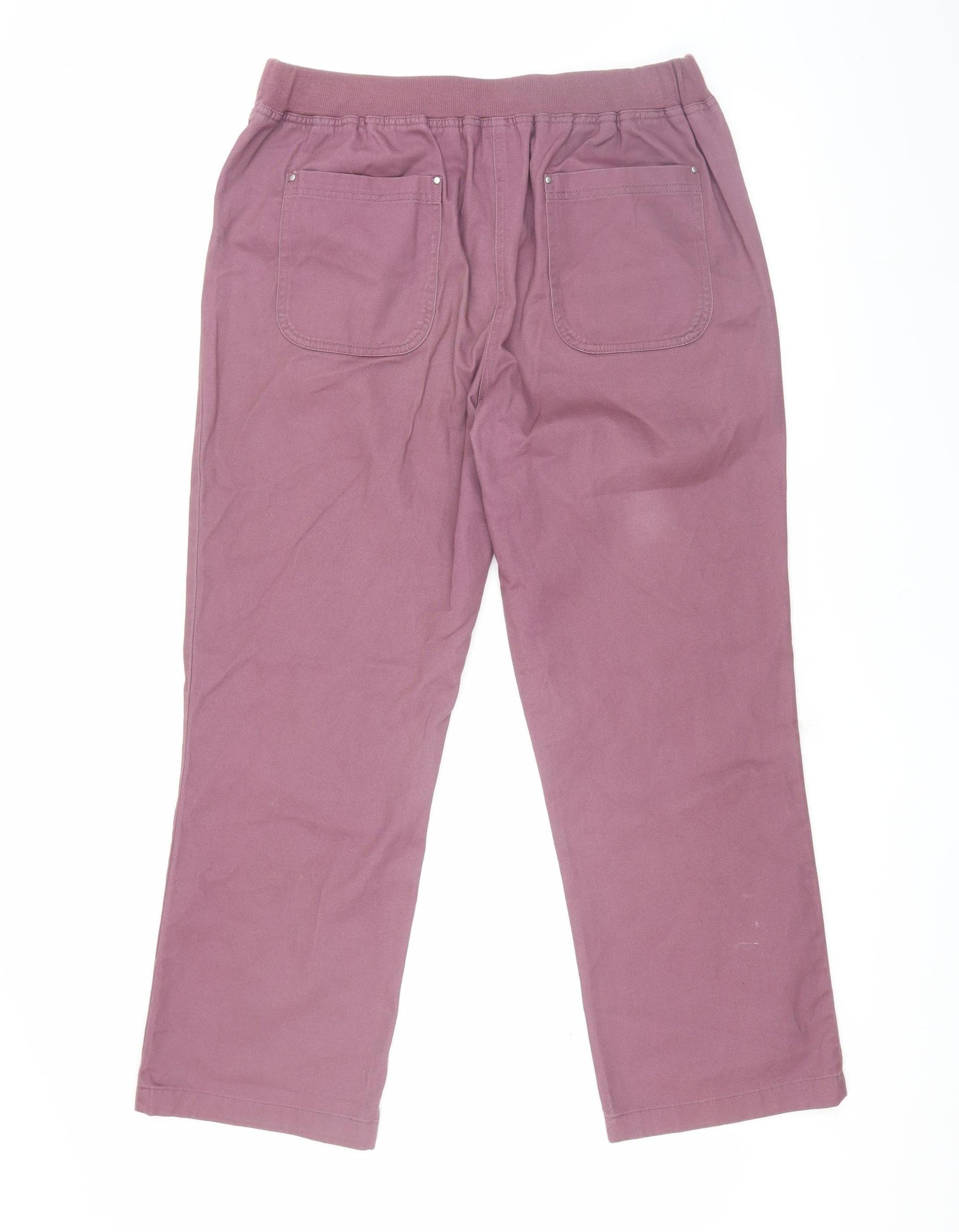 Step out in style and comfort with these Cotton Traders women's chinos. Crafted in a versatile Dusty Grape colour, these trousers bring a subtle touch of elegance to any wardrobe. Made from 100% pure cotton, they offer a breathable fit ideal for spring and summer, perfectly combining fashion with functionality. The straight leg style ensures a flattering silhouette, while the mid-rise waist adds to the overall comfort.Designed for everyday wear, these chinos feature a practical button and zip closure, along with convenient pockets, making them an excellent choice for casual outings or relaxed occasions. The regular fit ensures a comfortable and easy wear that doesn’t compromise on style. Pair them with your favourite top for a chic, casual look or dress them up with a tailored shirt for a smart ensemble.These trousers, with their soothing pastel hue, will match effortlessly with what you already have in your wardrobe, providing versatility across different outfits and occasions. Despite slight signs of wear, these chinos remain in excellent condition, ready to breathe new life into your collection with their timeless appeal. Experience the enduring quality and style of Cotton Traders with this fashionable yet practical piece.