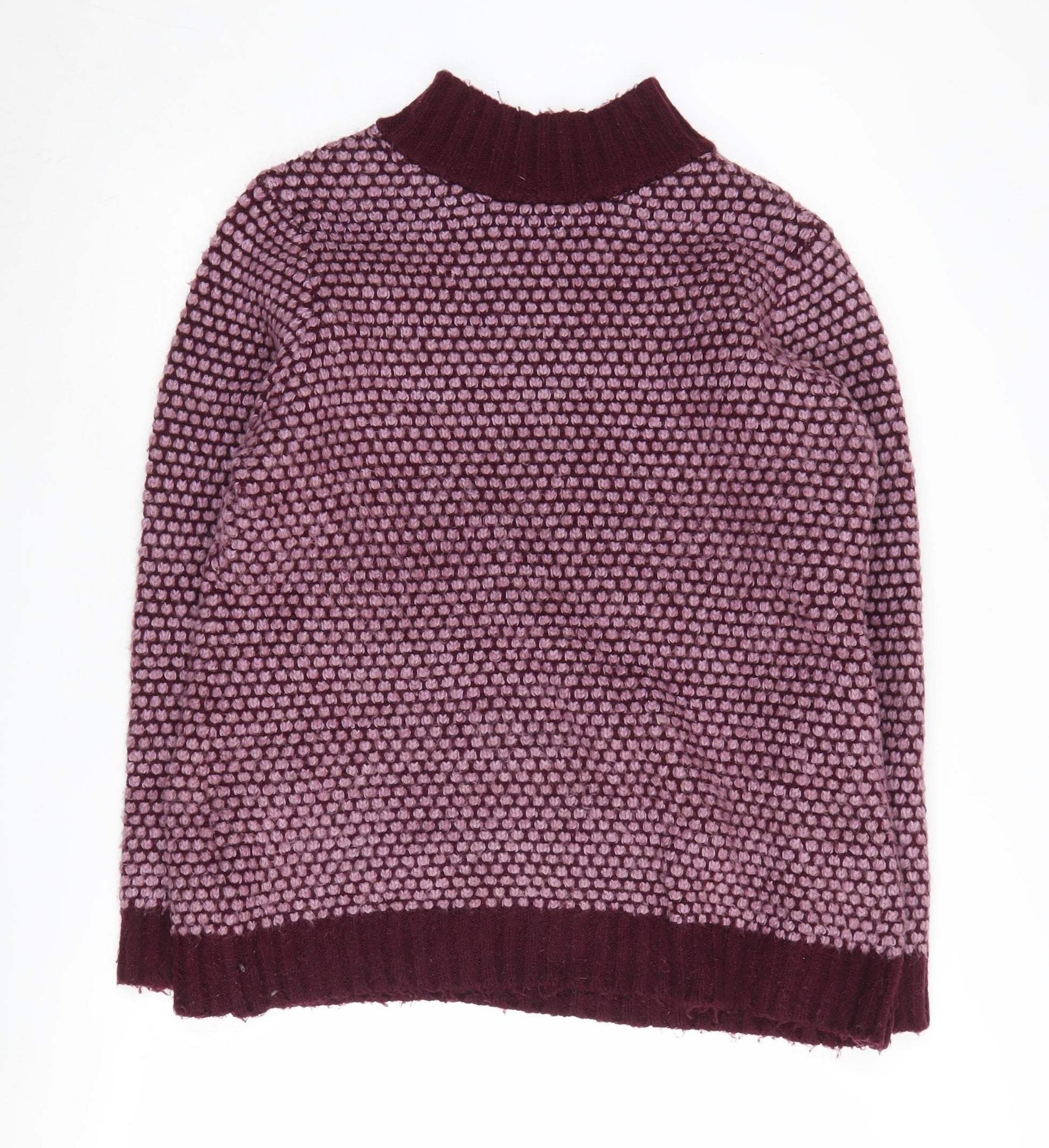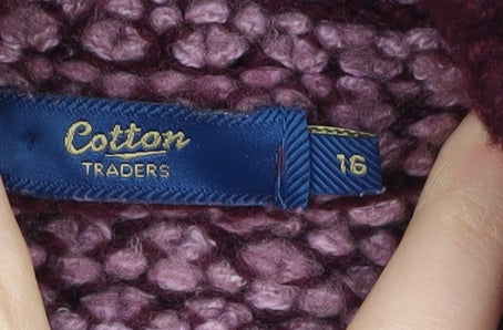Enhance your autumn and winter wardrobe with this stylish women's jumper from Cotton Traders. Designed in a rich purple hue, this jumper features a comfortable mock neck, making it a charming addition to any casual ensemble. Its chunky-knit style offers warmth and cosiness, perfect for those chilly days. Crafted from a blend of high-quality materials—86% acrylic, 12% polyester, and 2% elastane—the jumper ensures a relaxed fit while maintaining durability. The long sleeves and geometric pattern provide a touch of elegance, making it suitable for both casual outings and cozy afternoons indoors. In excellent condition with no visible defects, this jumper is an ideal choice for fashion-conscious individuals seeking both comfort and style. Explore the versatility and comfort of this charming piece, and let it become your favourite go-to for effortless style and warmth.