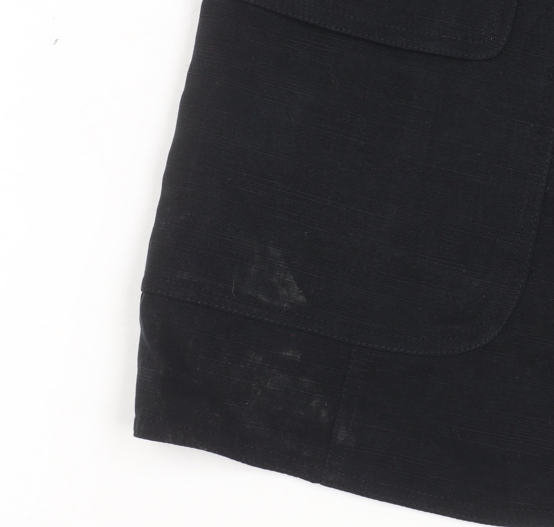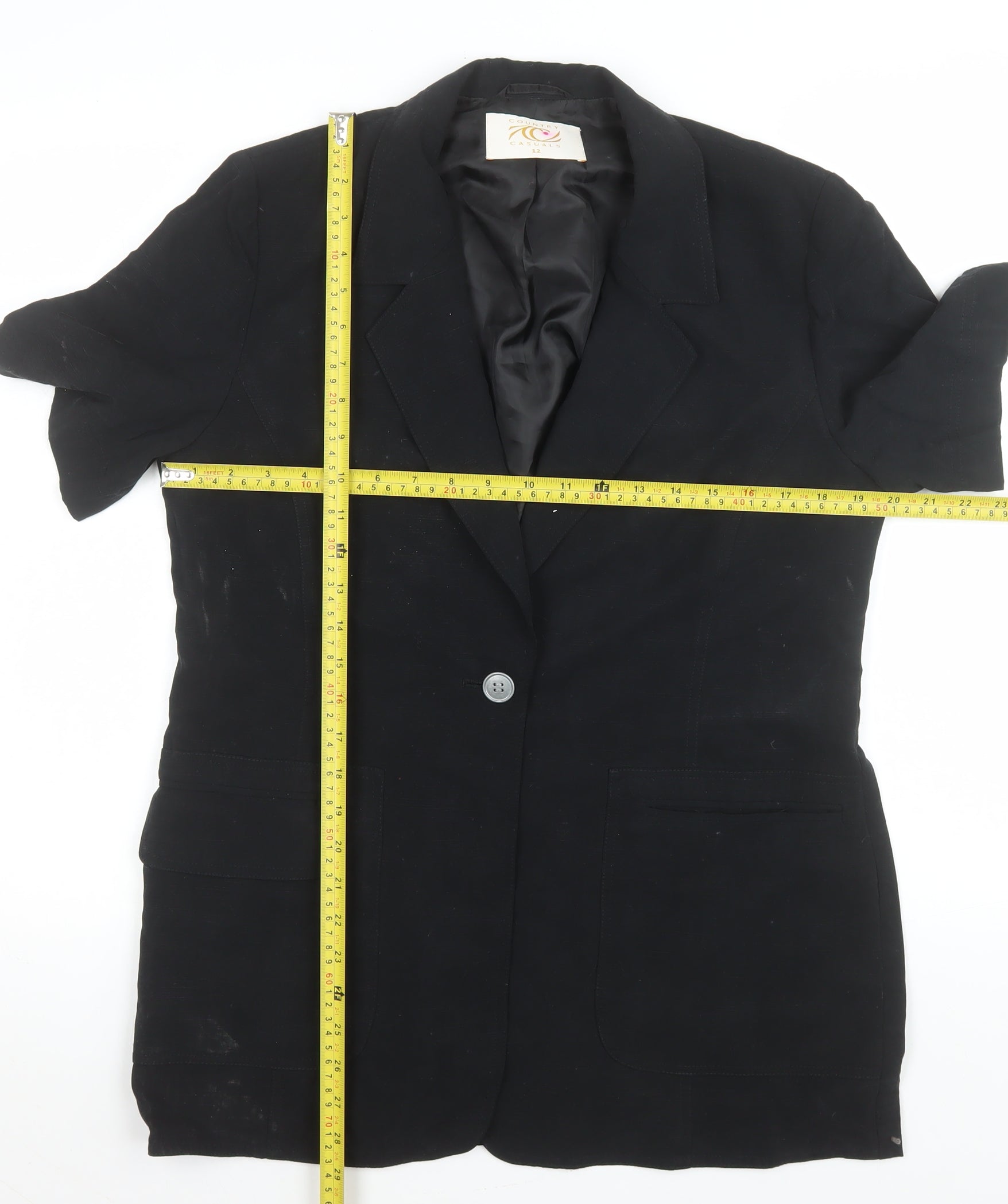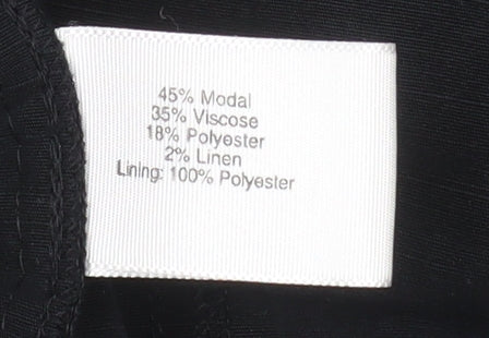 This elegant Country Casuals women's black tunic blouse in size 12 is a timeless piece designed with sophistication and comfort in mind. Made from a beautifully soft and structured blend of premium materials—Modal, Viscose, Polyester, and Linen—it offers both durability and breathability. The woven texture gives it a refined look suitable for both business and semi-formal occasions. A subtle sheen and smooth lining ensure a comfortable fit that moves with you throughout your day. Featuring classic short sleeves, a collared neckline, and a single-button fastening for a tailored silhouette, this blouse exudes effortless elegance. The two practical front pockets add a functional yet stylish touch, ideal for keeping small essentials handy. Its versatile black colour complements a wide range of outfits, making it a wardrobe staple for any season, especially Spring through Autumn. Perfect for workwear, casual meet-ups, or smart ensembles, this blouse transitions beautifully from office to evening with ease. Though pre-loved and showing some minor marks near the lower hem area, it remains in very good condition overall, reflecting careful wear. Pair this Country Casuals top with tailored trousers or a sleek pencil skirt for a polished, classic look, or style it with denim for a more casual feel. The attention to detail and timeless British tailoring make this an enduring favourite. A great value addition to any fashion-conscious wardrobe that appreciates quality and understated sophistication.