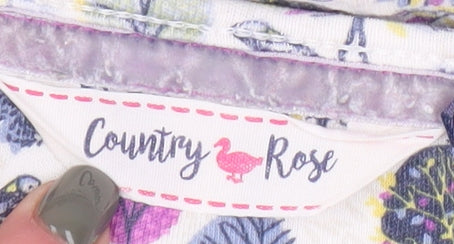 Discover elegance with the Country Rose Women's Multicoloured Floral Blouse in size L. Crafted from 100% cotton, this blouse offers a breathable and comfortable experience, ensuring you stay stylish throughout the day. The vivid floral pattern brings in a touch of spring and summer, perfect for casual outings or relaxed gatherings. Its 3/4 sleeve design and classic fitted cut add a timeless charm, suitable for all seasons. This pullover blouse features a round neckline, adding a simple yet classic touch. Machine washable for easy care, it's designed with practicality in mind. The nature-inspired theme makes it a desirable choice for those who adore floral patterns. In excellent condition, this blouse has been gently used with no visible signs of wear, making it a vibrant addition to your wardrobe. Embrace a relaxed fit and enjoy the versatility this blouse brings, whether paired with jeans or skirts. Price marked at a competitive £12.75, it’s an affordable and delightful option for everyday fashion enthusiasts. Elevate your wardrobe with this enchanting blouse today!