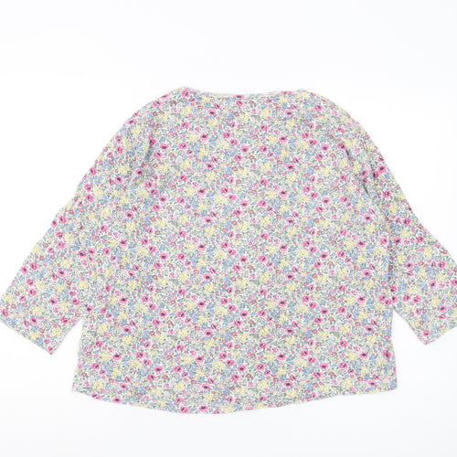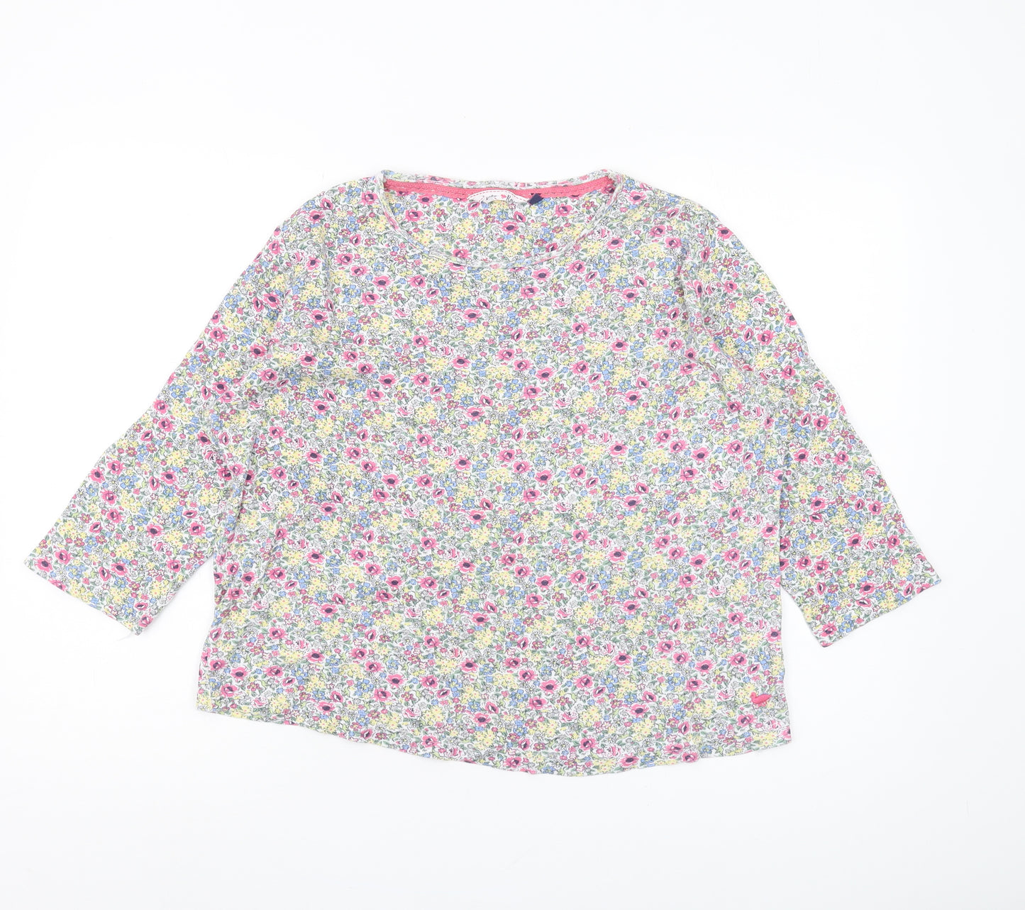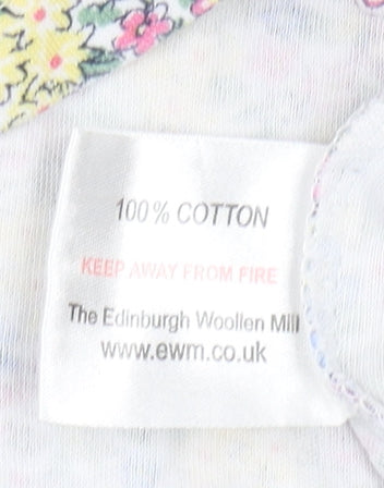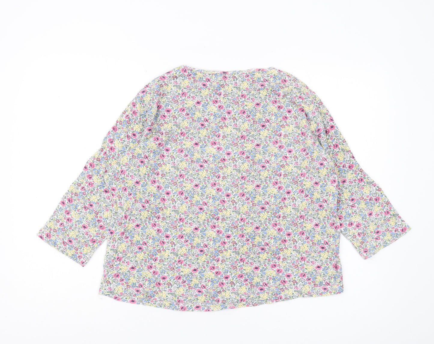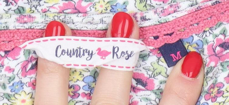 Elevate your spring and summer wardrobe with this charming multicoloured floral blouse from Country Rose. Designed for women, this regular fit blouse features a captivating floral pattern that exudes a refreshing and vibrant appeal. The blouse is crafted from 100% cotton, ensuring a soft, comfortable, and breathable wear. It flaunts a simplistic round neck design accompanied by casual 3/4 sleeves, making it ideal for casual occasions while maintaining a touch of elegance. The jersey fabric lends a relaxed yet stylish silhouette, perfect for those warm, sunny days or casual outings. This pullover style blouse is effortlessly machine washable, allowing for easy care and practicality. Although it is in excellent condition, showing no visible signs of wear, it will make a lovely addition to your seasonal collection, promising to add a dash of style with its beautifully curated floral theme. Ideal for wearers who appreciate a mix of comfort and style, this blouse promises not only to enhance your wardrobe but also to elevate your fashion game, making it a must-have piece. Available in size M, it's tailored for a regular fit, ensuring a flattering look for casual settings.