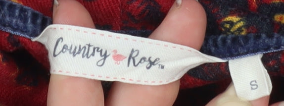 Embrace comfort and timeless style with this beautiful Country Rose women's tunic blouse, perfect for adding a touch of autumnal charm to your wardrobe. Crafted from a soft and stretchy jersey fabric composed of 96% polyester and 4% elastane, this red top features a distinctive floral print throughout, combining warm tones of red, gold, and navy for a rich, cosy look. The flattering cowl neckline adds a soft drape around the neck, lending extra warmth and sophistication to your outfit. Its long sleeves make it ideal for cooler weather, while the comfortable pullover design ensures effortless wear. The relaxed fit provides easy movement and a flattering silhouette, perfect for casual outings or layering under a jacket or cardigan. Two front patch pockets give a practical touch, adding to the top’s everyday charm. Designed for women who value a blend of comfort and elegance, this tunic is versatile enough for a day at home, a coffee with friends, or a casual evening out. Pair it effortlessly with jeans, jeggings, or tailored trousers to suit various occasions. The jersey fabric keeps it soft and wrinkle-resistant, making it easy to care for and ideal for regular wear. Reflecting the Country Rose brand’s heritage of quality and style from The Edinburgh Woollen Mill, this top offers understated classic appeal that transitions smoothly across seasons. Ideal for autumn and winter, it promises both warmth and breathability. In excellent pre-loved condition, this piece has been well cared for and shows minimal signs of wear, ready to bring cheerful floral flair to your wardrobe. Its timeless design makes it a must-have for stylish layering and comfortable everyday fashion. Don’t miss the chance to make this delightful floral cowl neck tunic yours today — both practical and effortlessly chic, it’s a wardrobe staple that will remain a favourite for years to come.