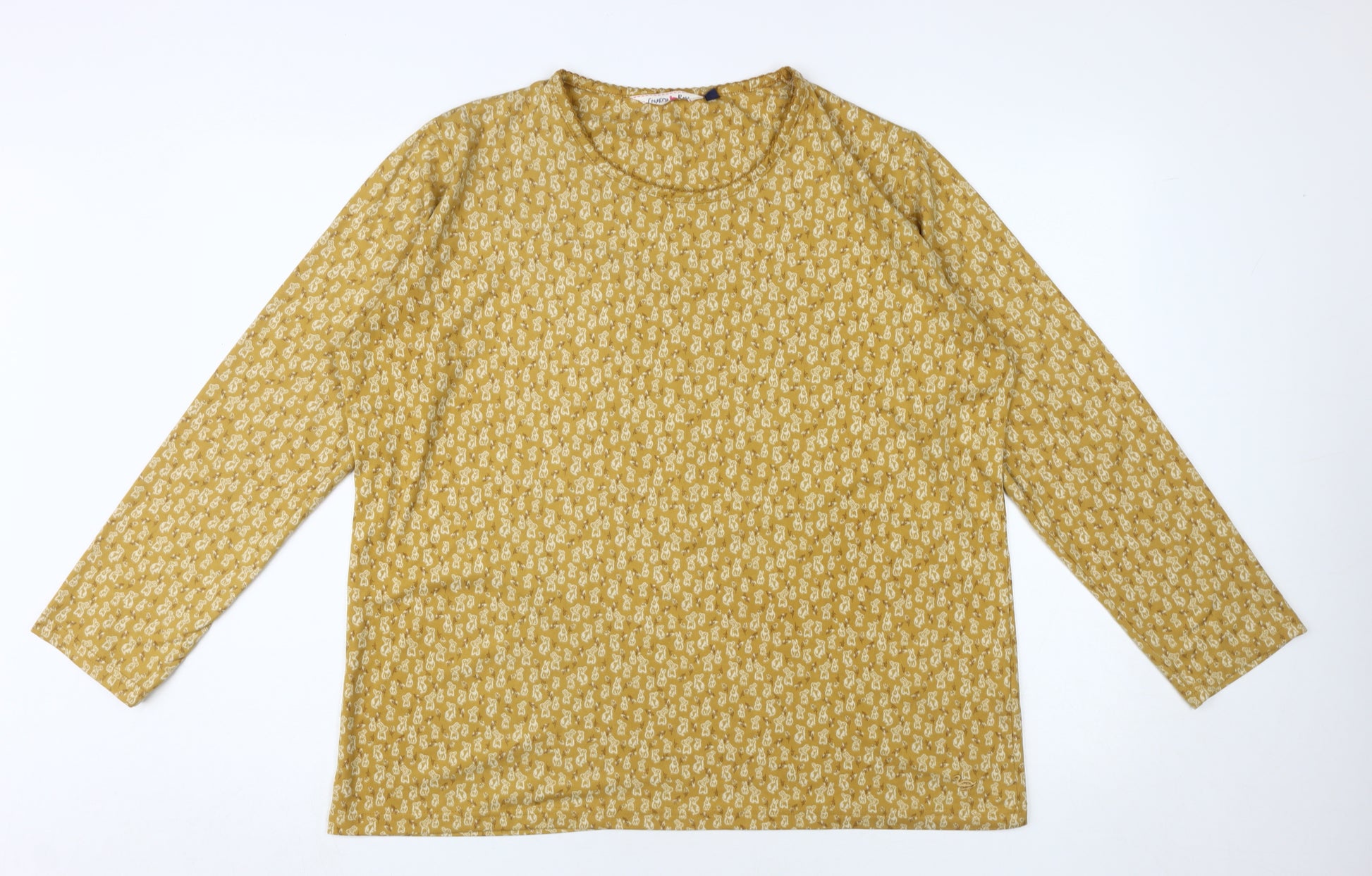 Add a touch of elegance to your wardrobe with this Country Rose women's top, featuring a delightful yellow floral pattern that is perfect for any casual occasion. Designed with comfort in mind, the long sleeves ensure warmth and style during cooler days, making it an ideal choice for both autumn and spring seasons. Crafted from a blend of polyester and elastane, this top offers a soft, stretchy feel that adapts to your body's shape, highlighting a regular fit that complements various body types. The material composition of 90% polyester and 10% elastane guarantees durability and long-lasting wear. The cheerful yellow hue combined with the floral pattern provides a fresh, vibrant look that can easily be dressed up or down. Pair it with your favourite jeans for a casual look, or combine it with a stylish skirt for an elegant evening out. Though gently used, this top is in excellent condition, free of any visible flaws or tears, ensuring you receive quality fashion without compromise. This versatile piece does not come with original sales tags but offers a charming addition to any wardrobe rotation. Don't miss out on this fabulous floral top that merges comfort with style effortlessly, making it a must-have for every stylish woman.
