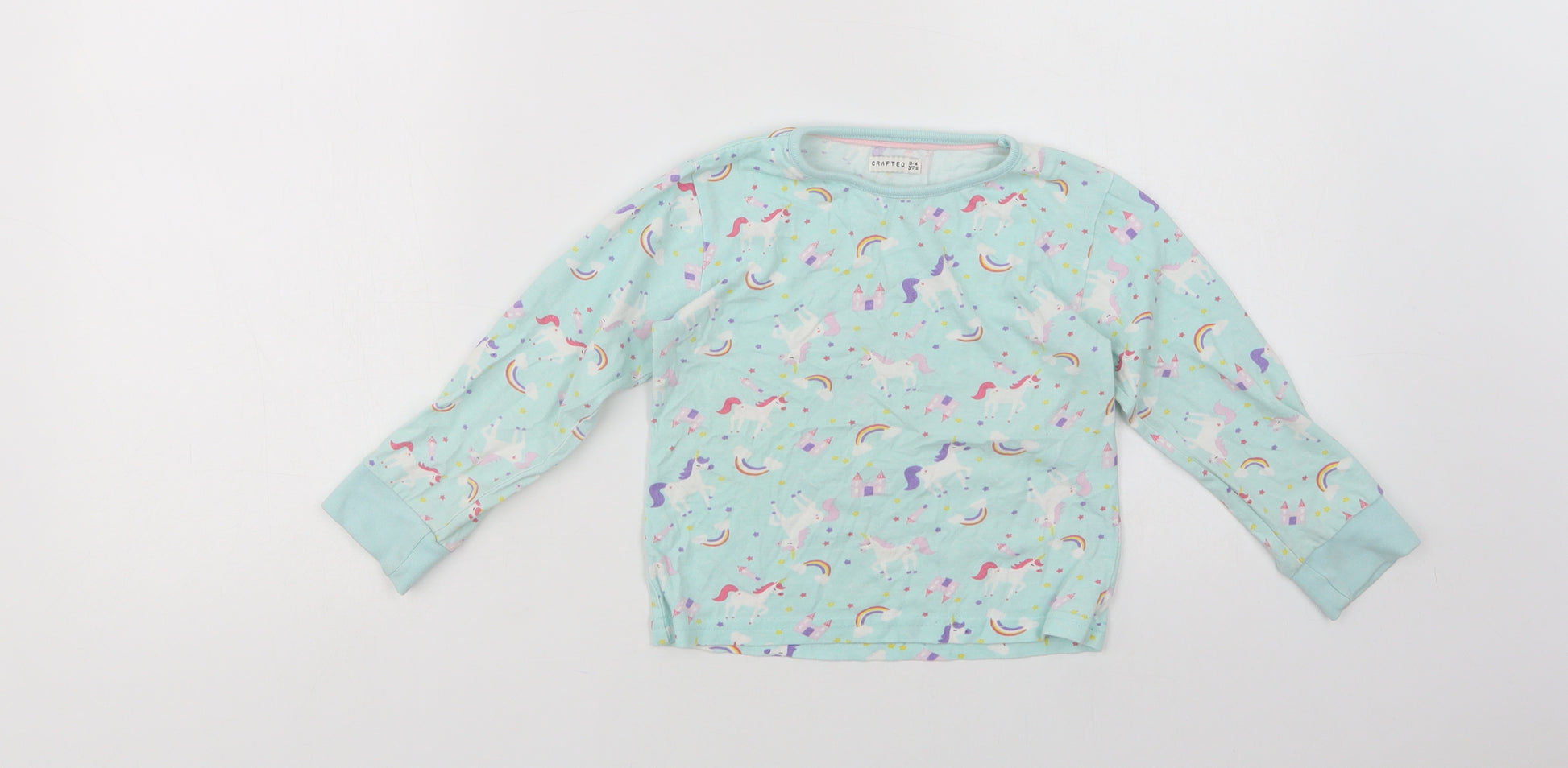 Girls Green Geometric Cotton Top Pyjama Top Size 3-4 Years - Unicorns And Rainbows