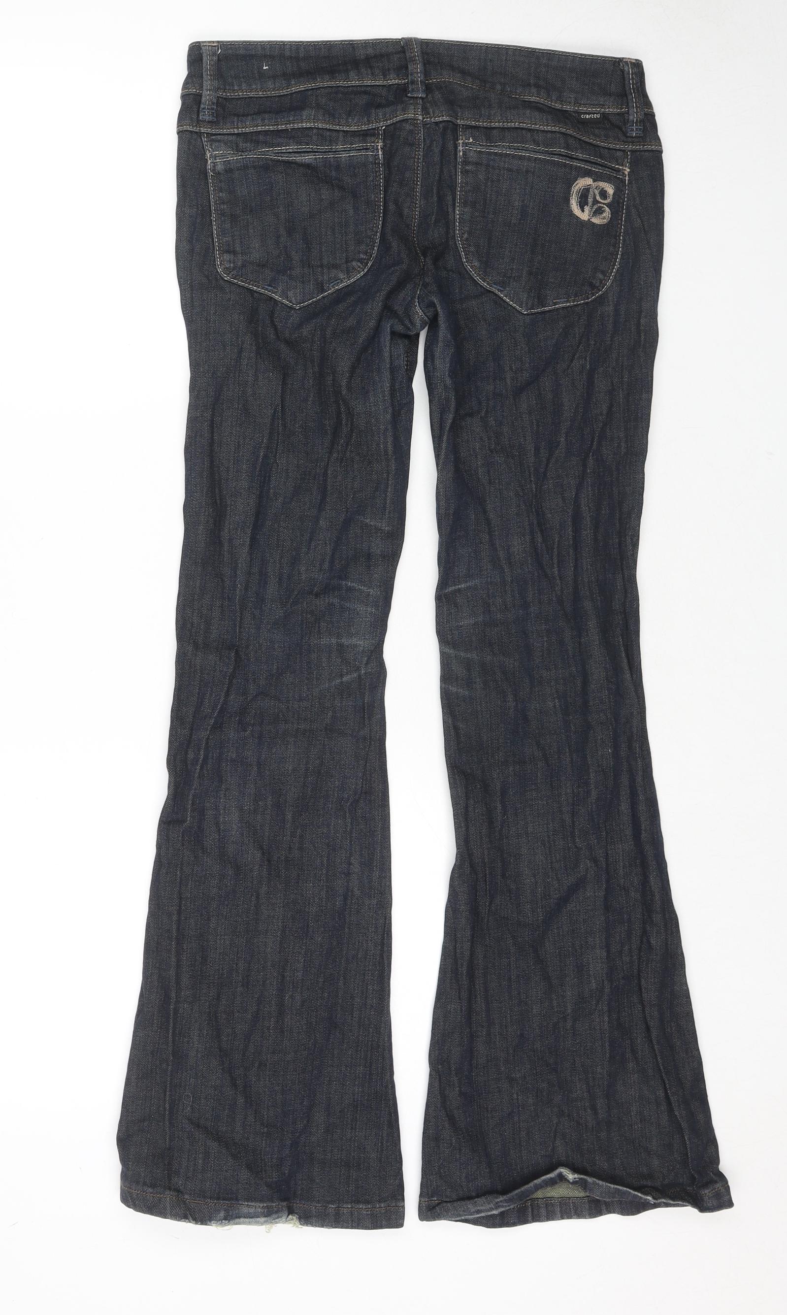 Womens Blue Cotton Flared Jeans Size 8 L29 in Regular Zip