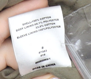 Womens Green Military Jacket Size 8 Cotton Mid-Length