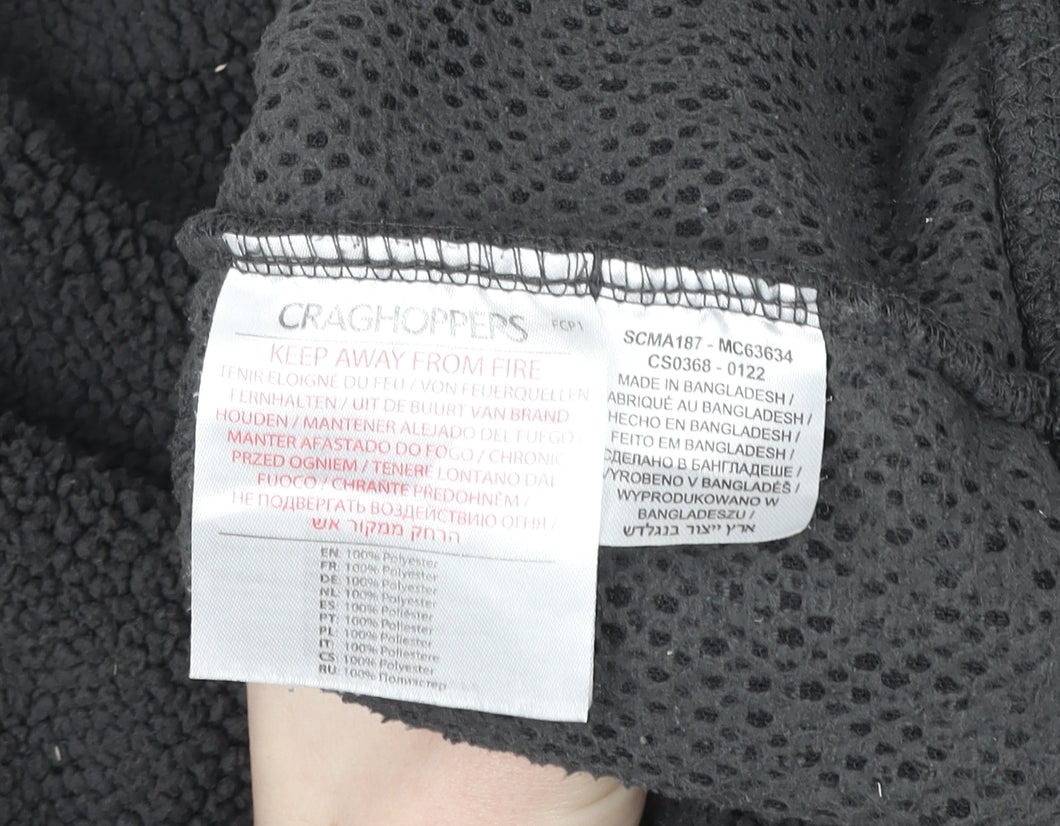 Stay warm and comfortable during your outdoor adventures with this Craghoppers men’s black 1/4 zip fleece sweatshirt. Crafted from 100% polyester fleece, this soft and breathable pullover provides essential insulation without bulk, making it perfect for layering in cooler weather. The fleece fabric ensures excellent moisture-wicking properties, keeping you dry and comfortable whether you’re hiking in the hills, walking through the countryside, or running errands in town.Designed with everyday practicality in mind, the high neck and quarter zip closure allow for easy temperature control, while the relaxed regular fit ensures freedom of movement. The solid black colour offers timeless versatility, pairing effortlessly with both activewear and casual outfits. As a trusted name in outdoor clothing, Craghoppers has blended performance, durability, and comfort into one exceptional piece that fits both adventure and everyday use.This men’s pullover fleece is ideal for multi-season wear — great as a standalone top in spring and autumn or as a layering piece under a jacket in winter. Its lightweight yet insulating fleece construction makes it perfect for outdoor pursuits like hiking, walking, and camping. The understated design features minimal detailing with subtle Craghoppers branding, making it both stylish and functional.In very good pre-owned condition, this fleece shows only light signs of wear with some minor linting consistent with gentle use. It remains a quality, reliable piece that still delivers exceptional comfort and warmth. Machine washable for easy care, it’s a dependable wardrobe essential that offers excellent performance value. Whether you’re heading outdoors or simply relaxing at home, this Craghoppers fleece sweatshirt is a practical and timeless addition to any men’s wardrobe at a great everyday price.